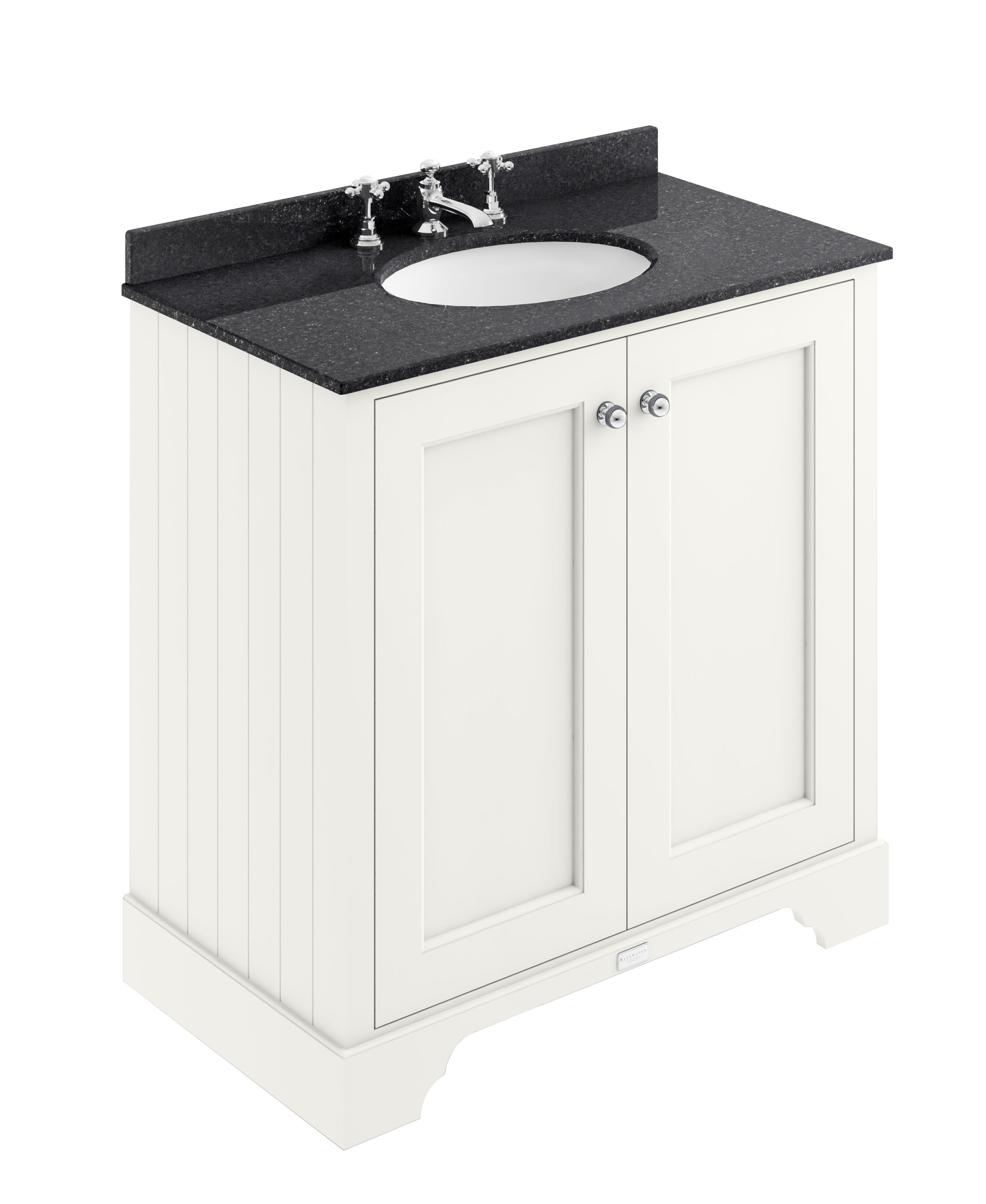 Bayswater 800mm 2-Door Cab With 3 Tap Hole Black Marble Top Basin - Pointing White