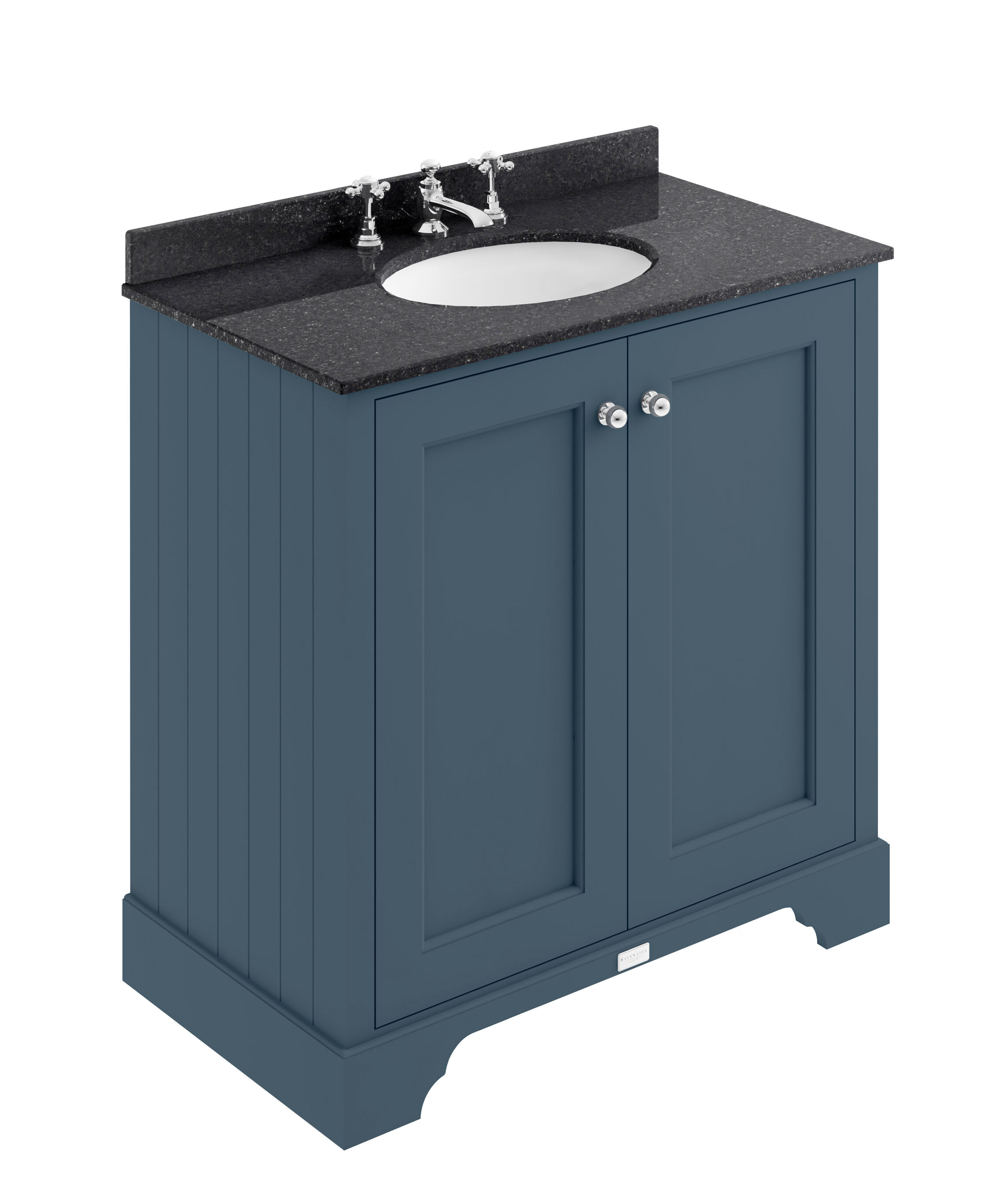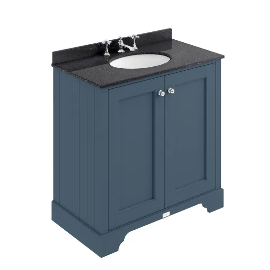 Bayswater 800mm 2-Door Cab With 3 Tap Hole Black Marble Top Basin - Stiffkey Blue