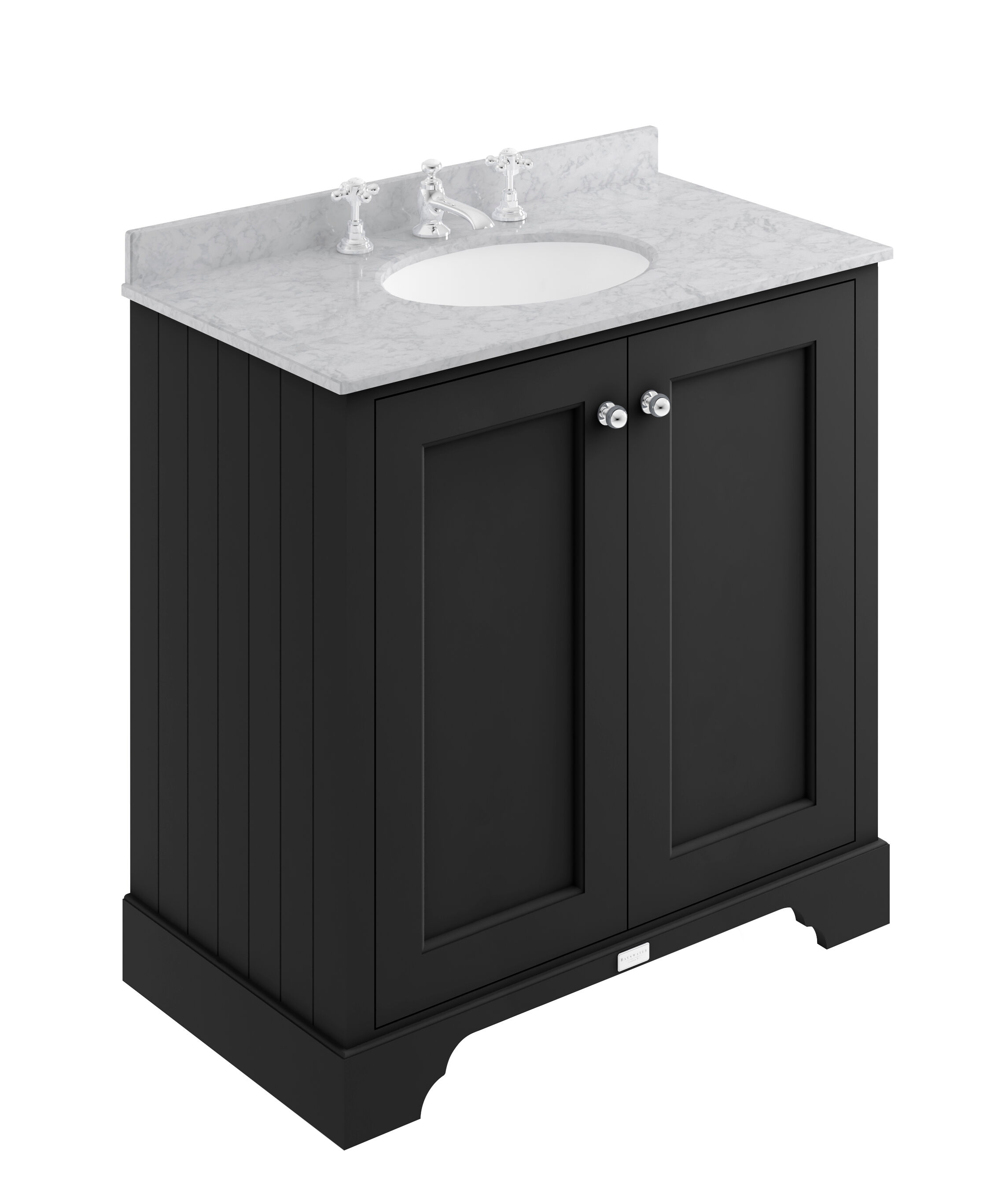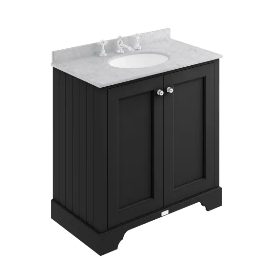 Bayswater 800mm 2-Door Cab With 3 Tap Hole Grey Marble Top Basin - Matt Black