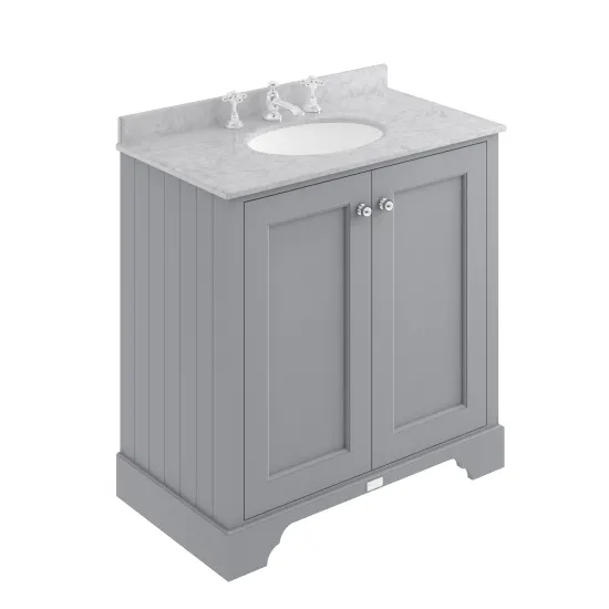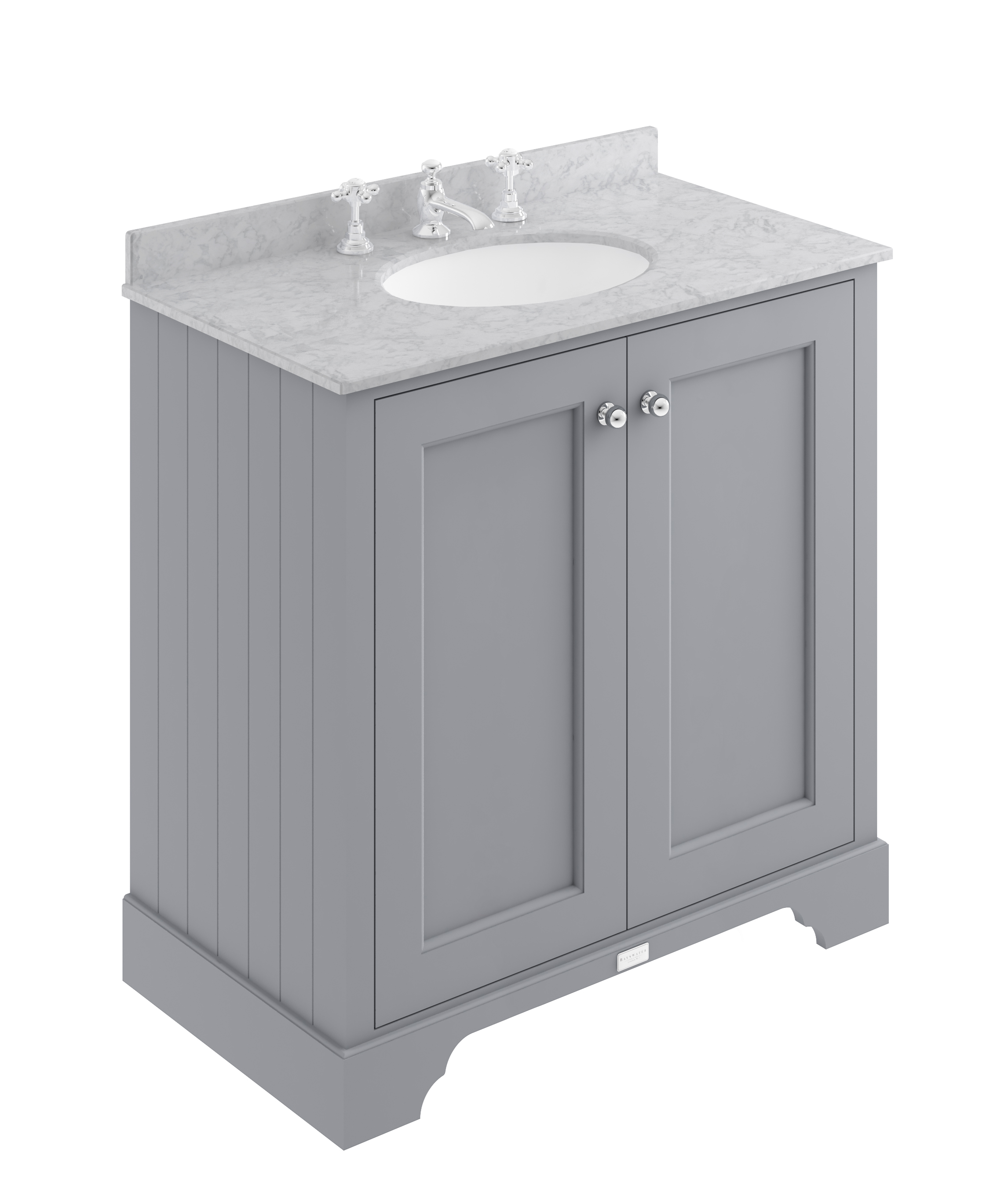 Bayswater 800mm 2-Door Cab With 3 Tap Hole Grey Marble Top Basin - Plummett Grey