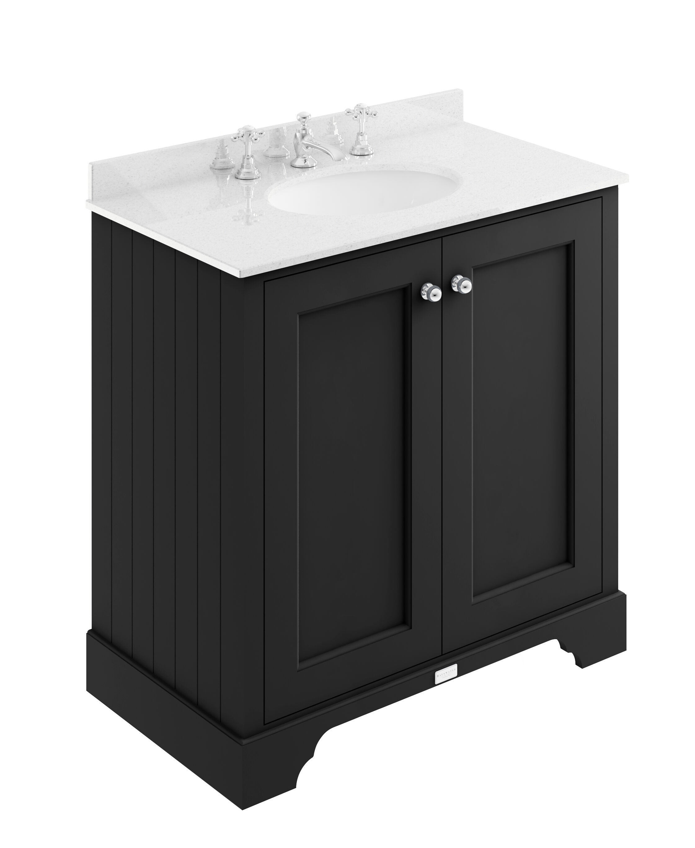 Bayswater 800mm 2-Door Cab With 3 Tap Hole White Marble Top Basin - Matt Black