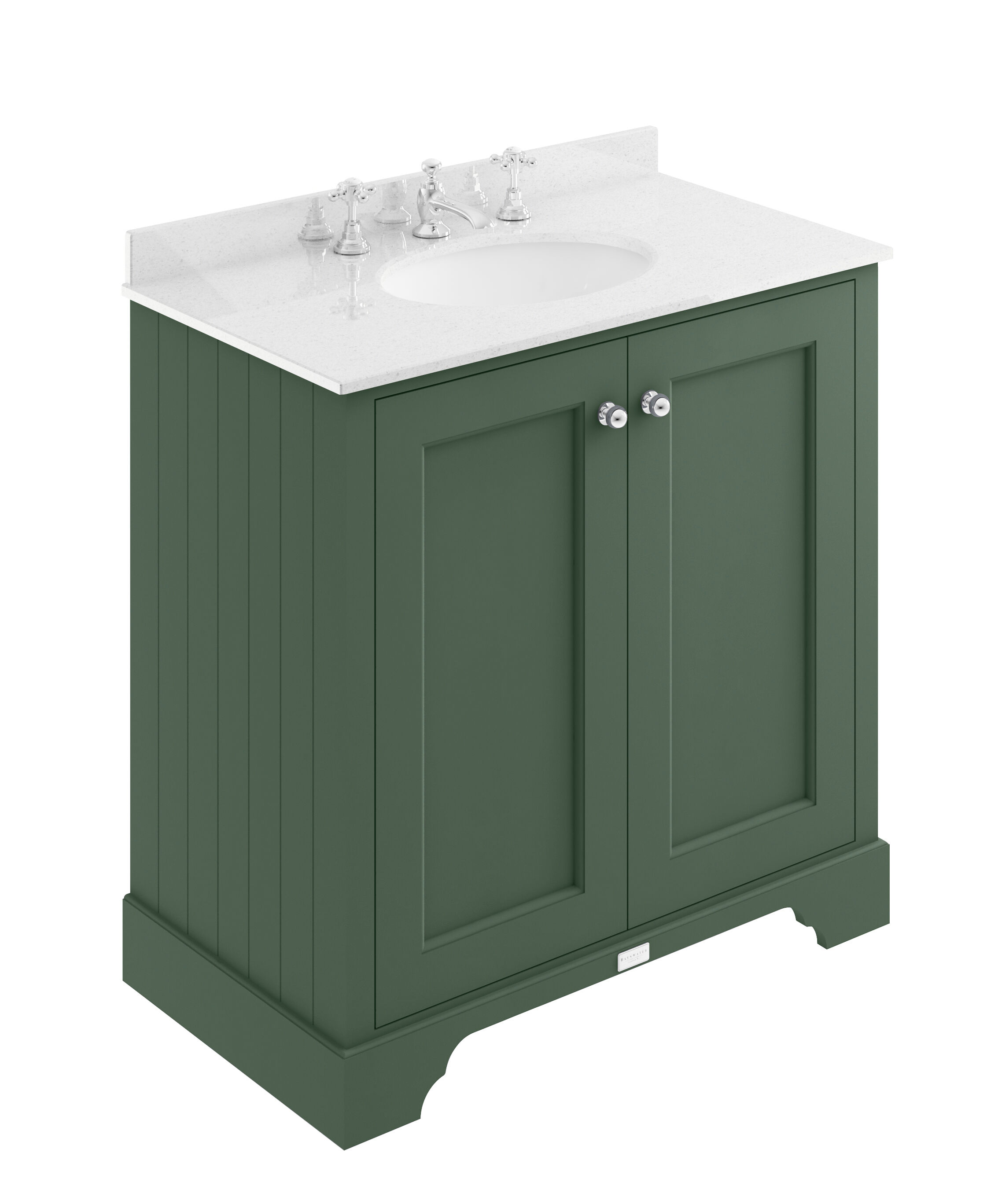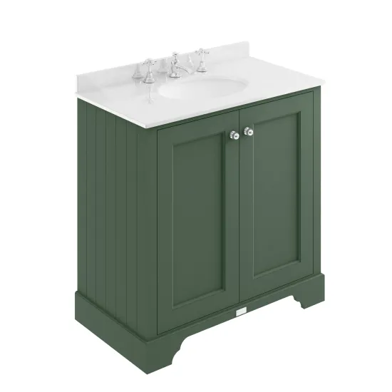 Bayswater 800mm 2-Door Cab With 3 Tap Hole White Marble Top Basin - Hunter Green