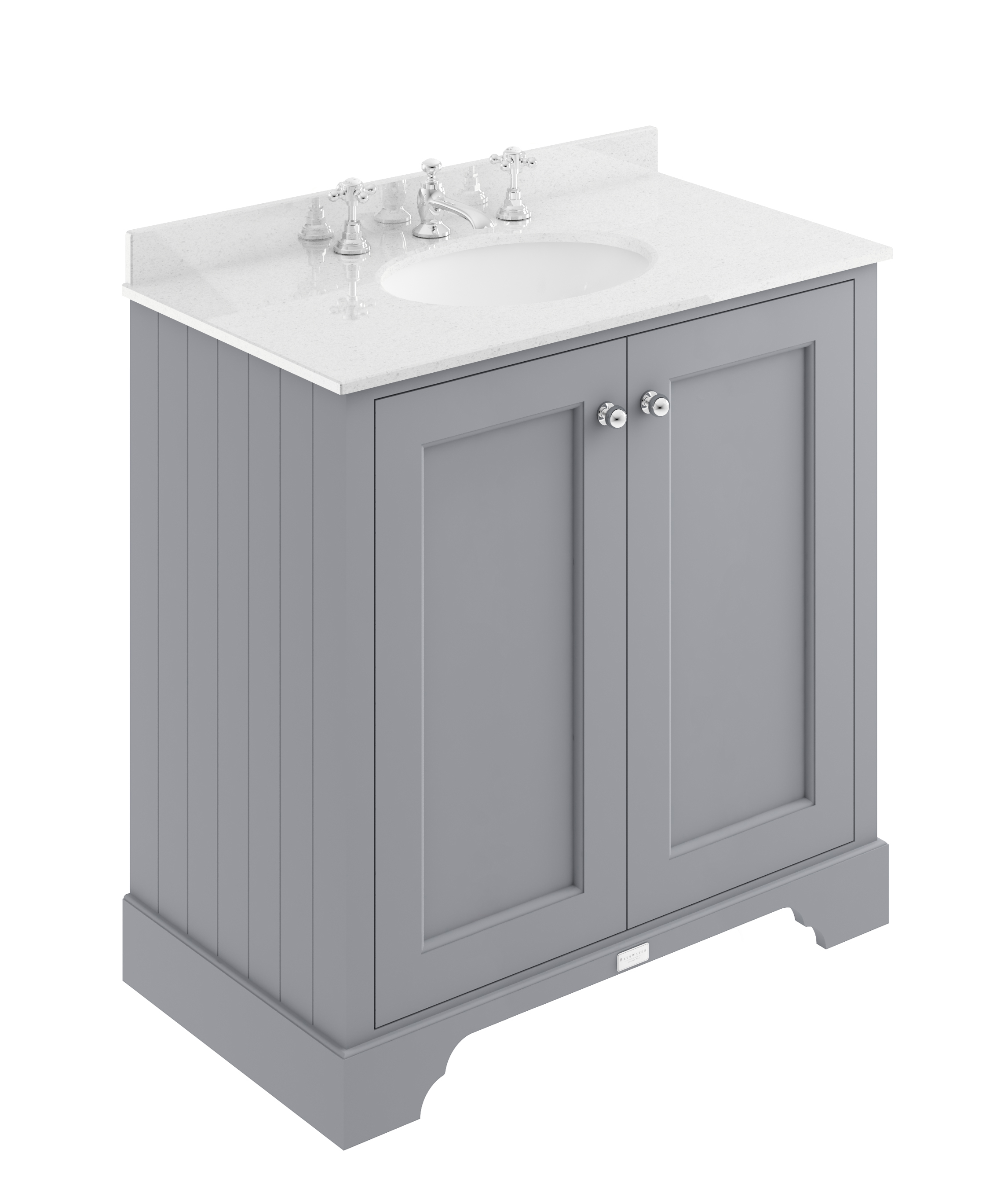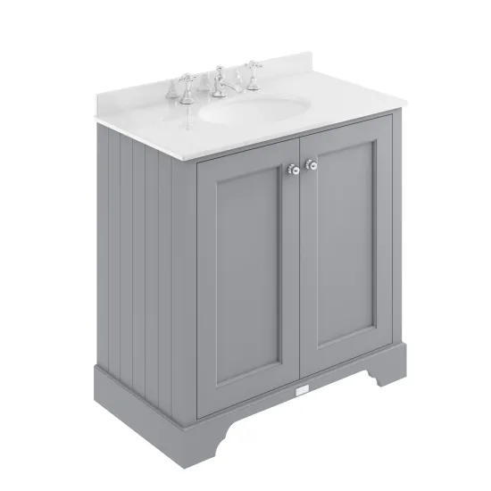 Bayswater 800mm 2-Door Cab With 3 Tap Hole White Marble Top Basin - Plummett Grey