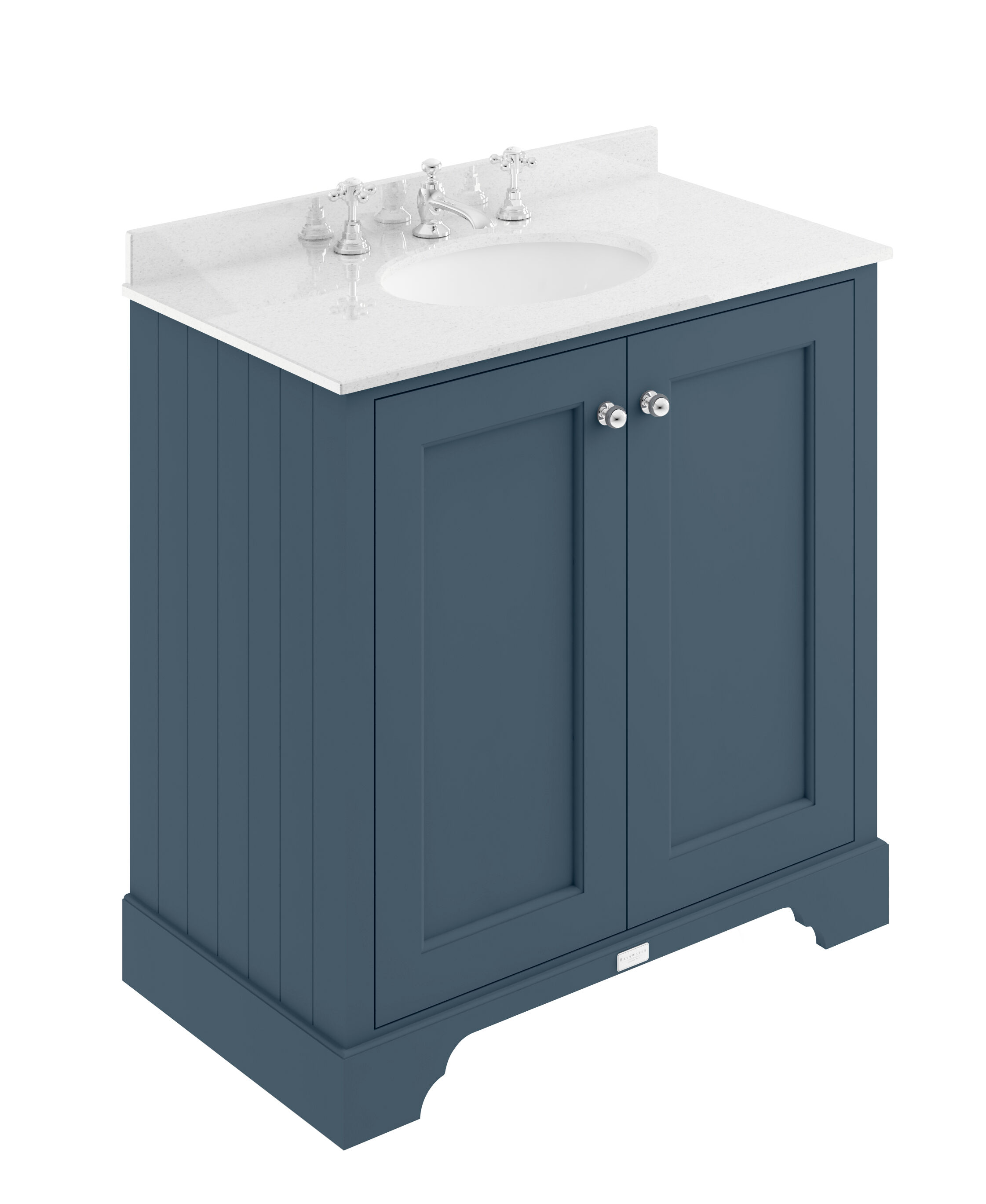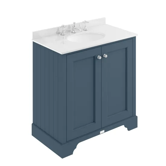 Bayswater 800mm 2-Door Cab With 3 Tap Hole White Marble Top Basin - Stiffkey Blue