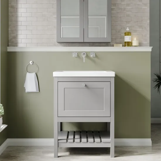 Bexley Floor Standing 1 Drawer Vanity & 0 Tap Hole Contemporary Fireclay Basin, 600mm - Cool Grey