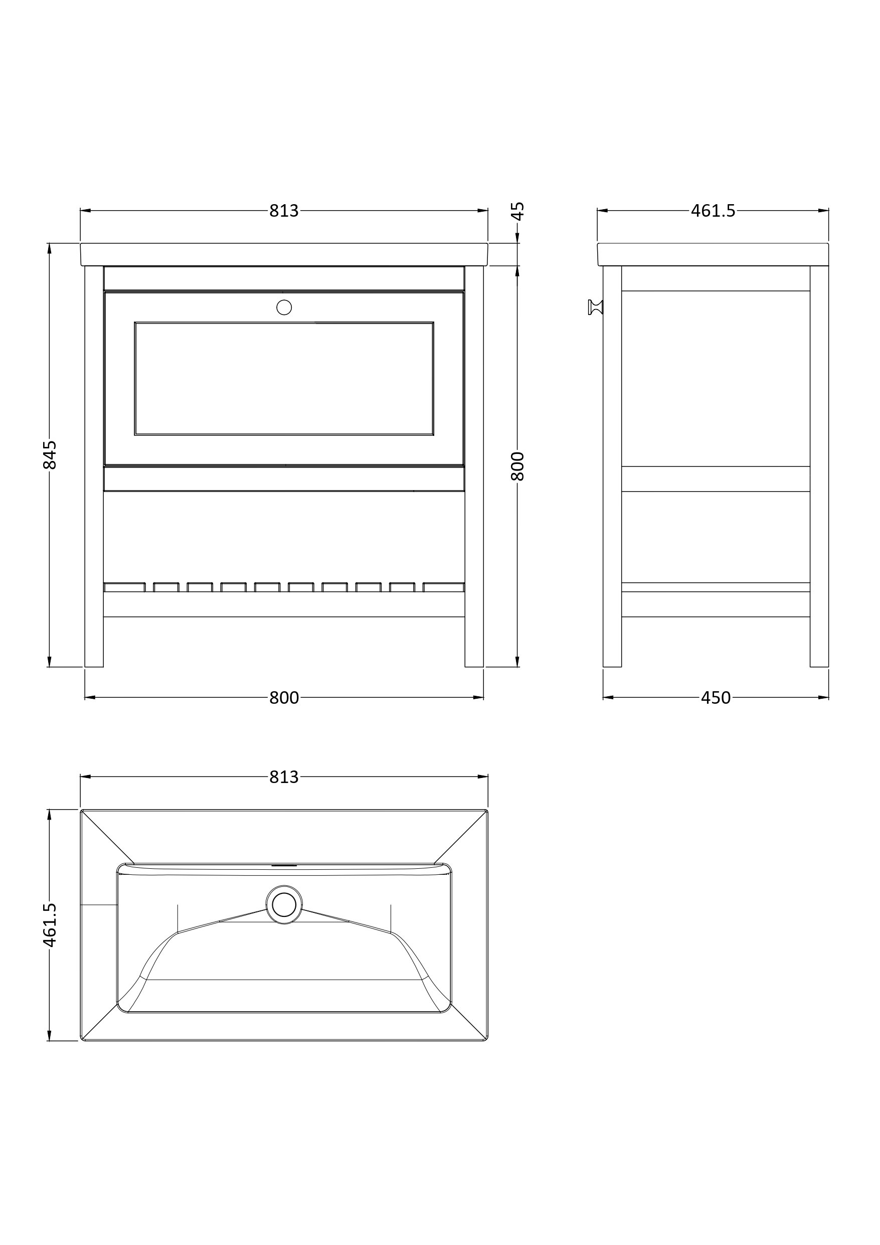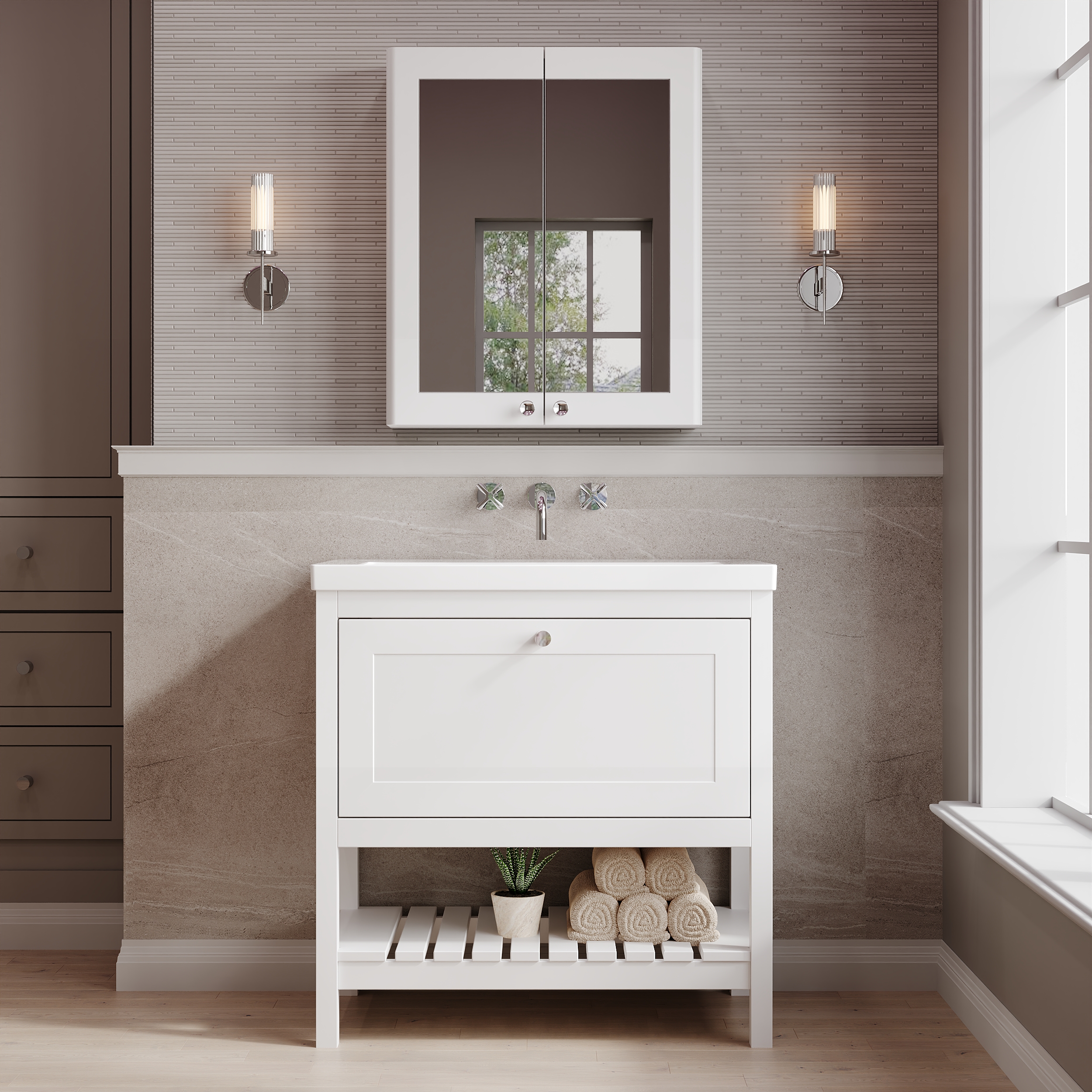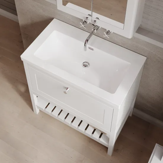 Bexley Floor Standing 1 Drawer Vanity & 0 Tap Hole Contemporary Fireclay Basin, 800mm - Pure White