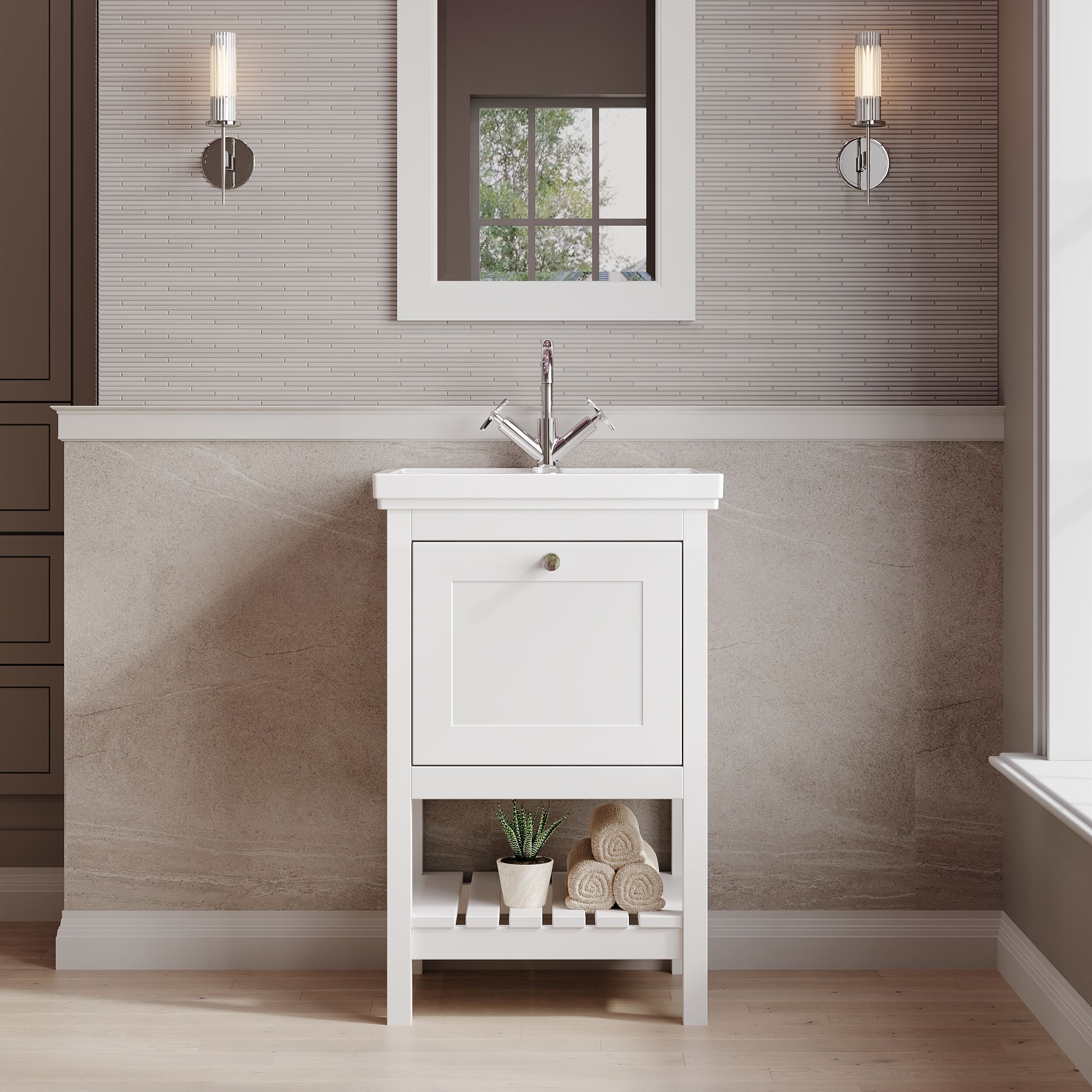 Hudson Reed Bexley Floor Standing 1 Drawer Vanity & 0 Tap Hole Fireclay Basin, 500mm - Pure White