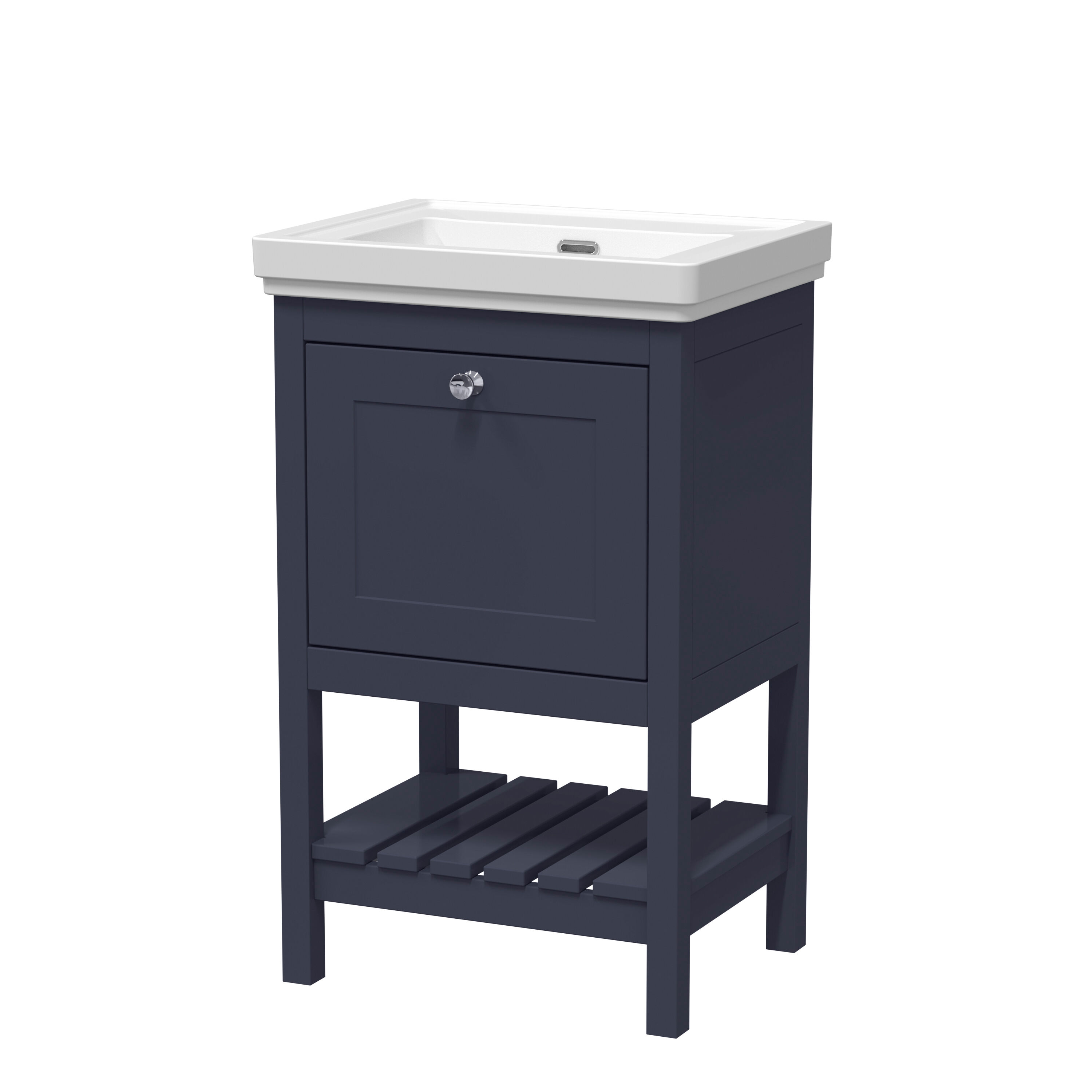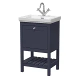 Hudson Reed Bexley Floor Standing 1 Drawer Vanity & 0 Tap Hole Fireclay Basin, 500mm - Indigo Blue