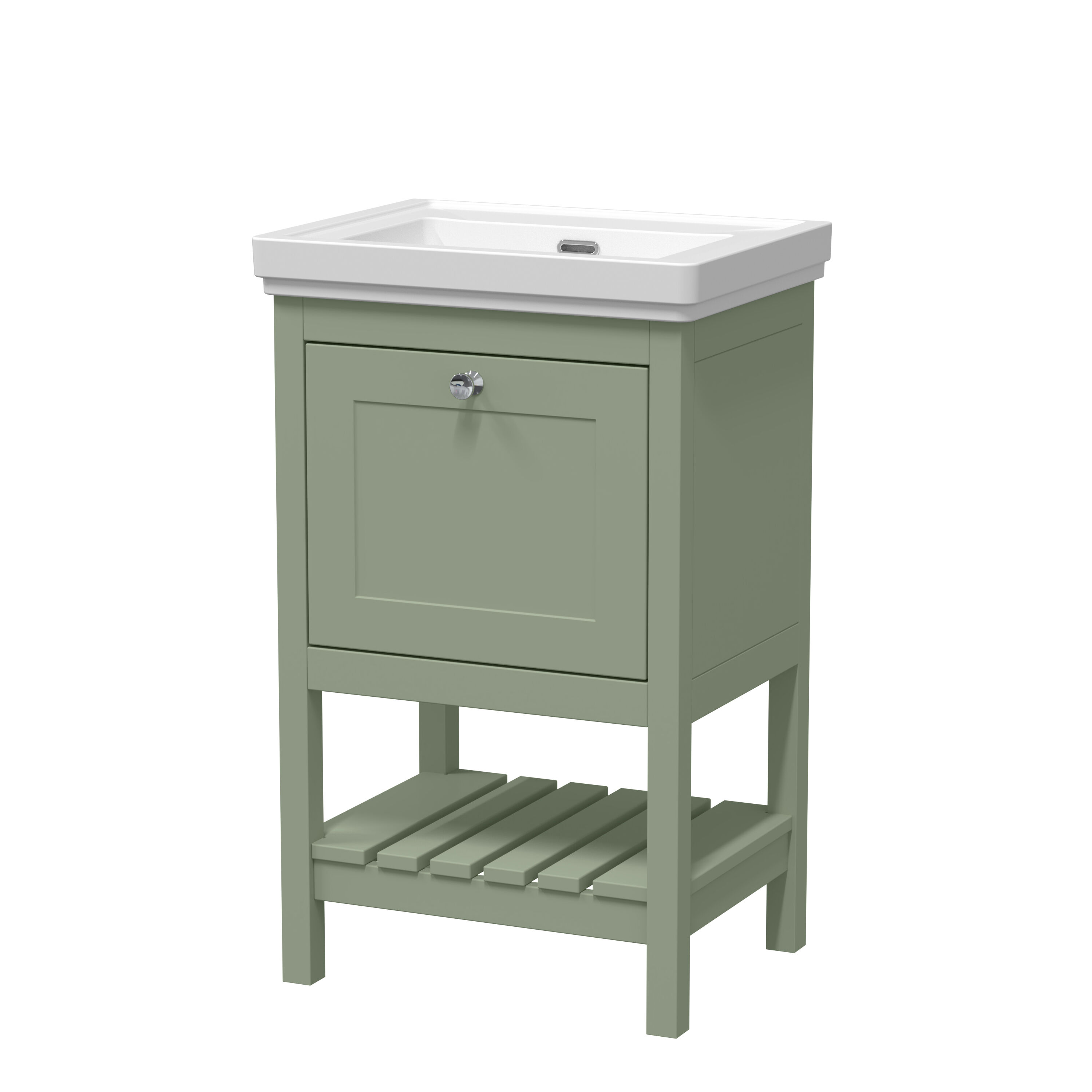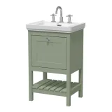 Hudson Reed Bexley Floor Standing 1 Drawer Vanity & 0 Tap Hole Fireclay Basin, 500mm - Fern Green
