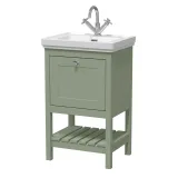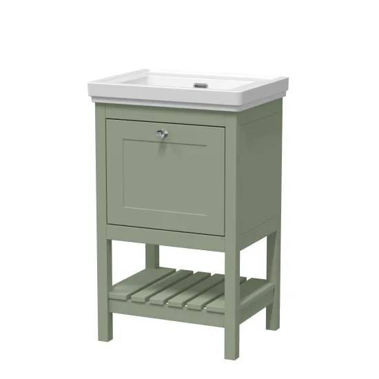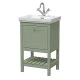 Hudson Reed Bexley 500mm Fern Green Floor Standing 1 Drawer Vanity Unit with 1 Tap Hole Basin