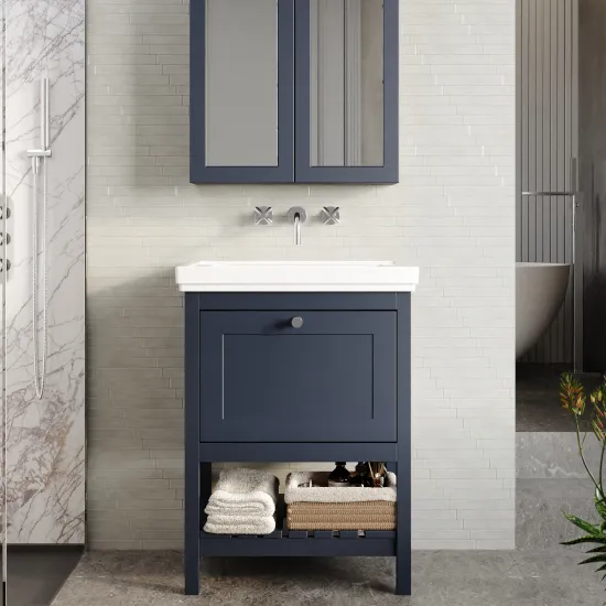 Hudson Reed Bexley 600mm Indigo Blue Floor Standing 1 Drawer Vanity Unit with 1 Tap Hole Fireclay Basin