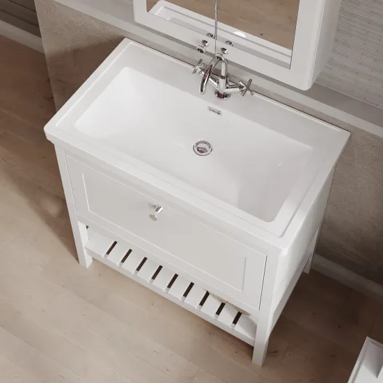 Hudson Reed Bexley Floor Standing 1 Drawer Vanity & 0 Tap Hole Fireclay Basin, 800mm - Pure White