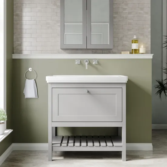 Hudson Reed Bexley Floor Standing 1 Drawer Vanity & 0 Tap Hole Fireclay Basin, 800mm - Cool Grey