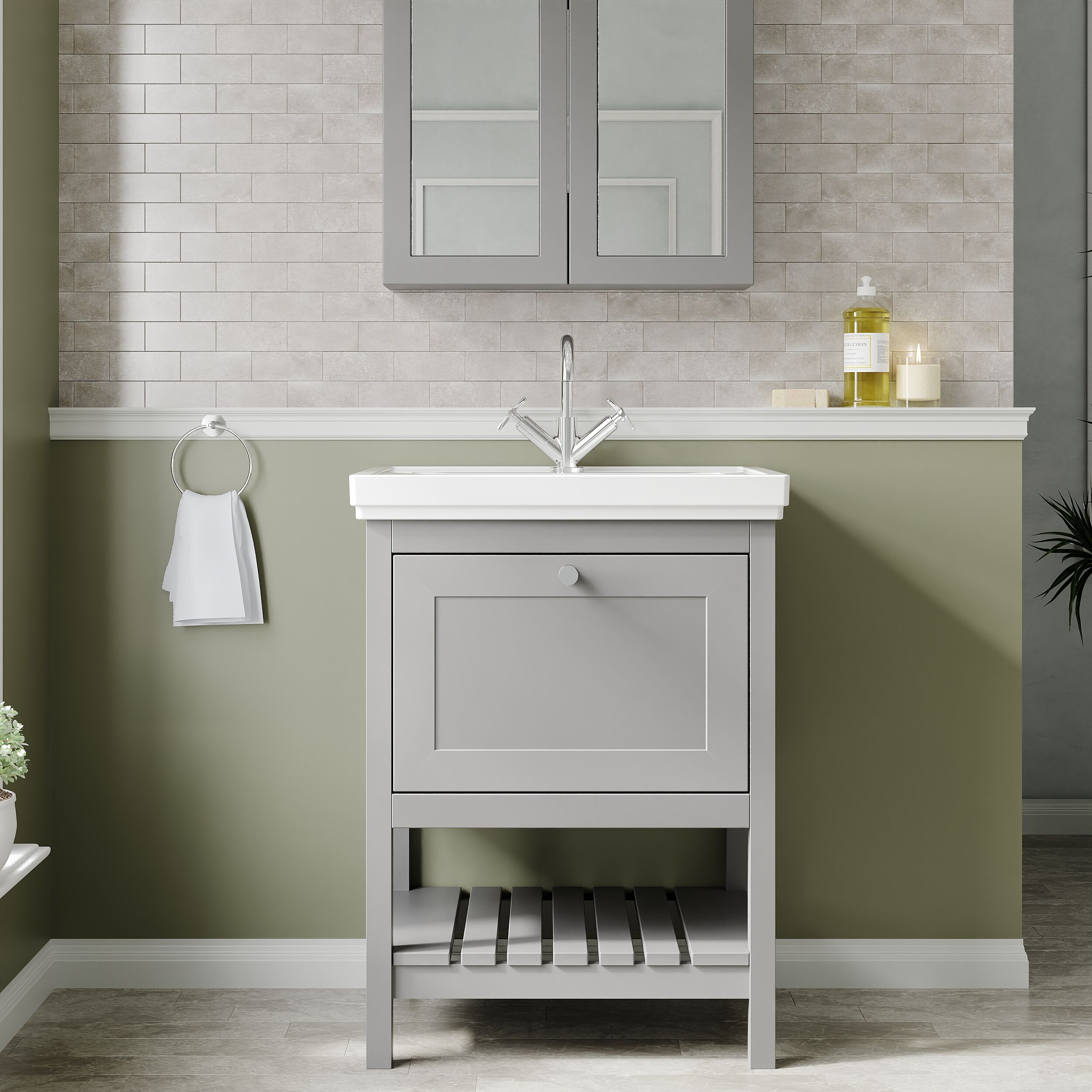 Hudson Reed Bexley 600mm Traditional Cool Grey 1 Drawer Floor Standing Vanity Unit With Basin