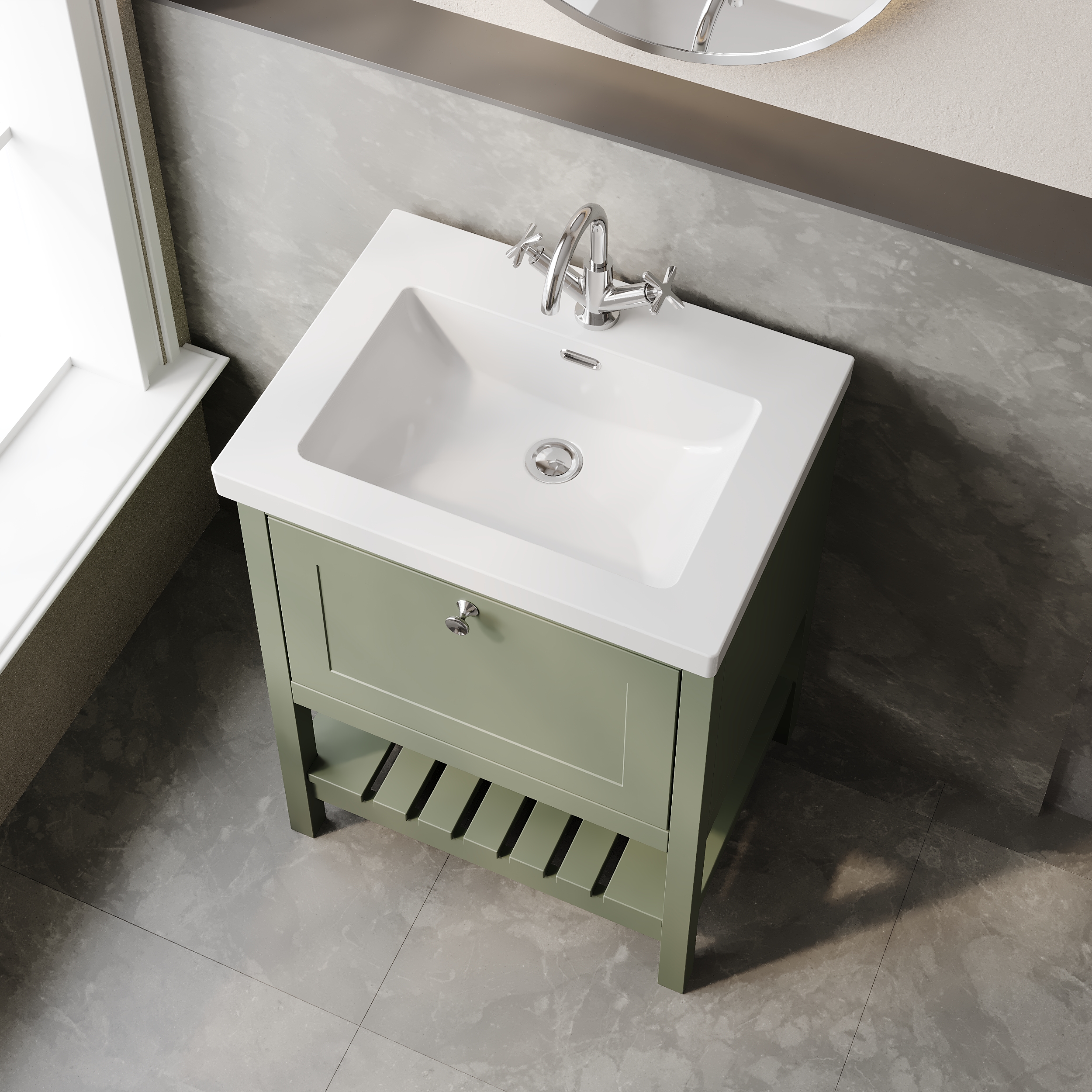 Hudson Reed Bexley Floor Standing 1 Drawer Vanity & 1 Tap Hole Contemporary Fireclay Basin, 600mm - Fern Green