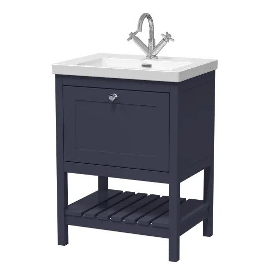 Hudson Reed Bexley Floor Standing 1 Drawer Vanity & 1 Tap Hole Contemporary Fireclay Basin, 600mm - Indigo Blue