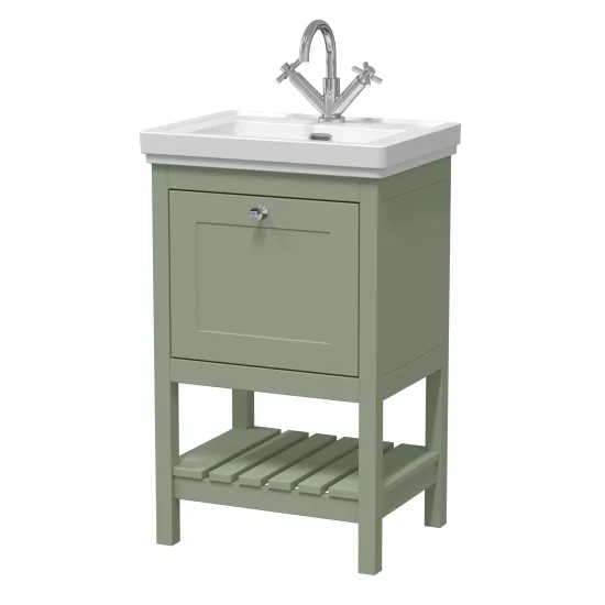 Hudson Reed Bexley Floor Standing 1 Drawer Vanity & 1 Tap Hole Fireclay Basin, 500mm - Fern Green