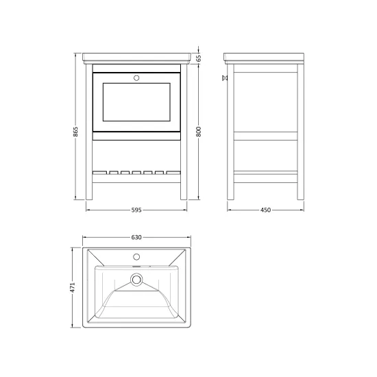 Hudson Reed Bexley Floor Standing 1 Drawer Vanity & 1 Tap Hole Fireclay Basin, 600mm - Pure White