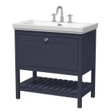 Hudson Reed Bexley 800mm Indigo Blue Traditional 1 Drawer Floor Standing Vanity Unit With 3 Tap Hole Basin