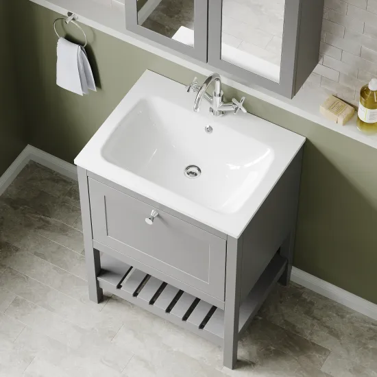 Bexley Floor Standing 1 Drawer Vanity & 1 Tap Hole Stone Basin, 600mm - Cool Grey