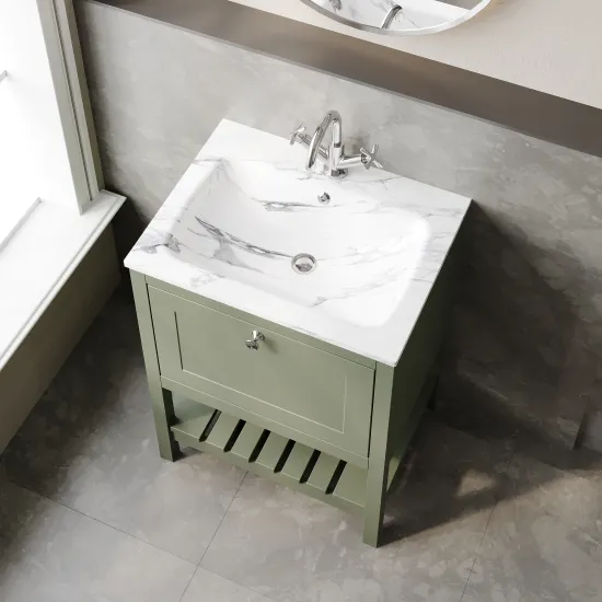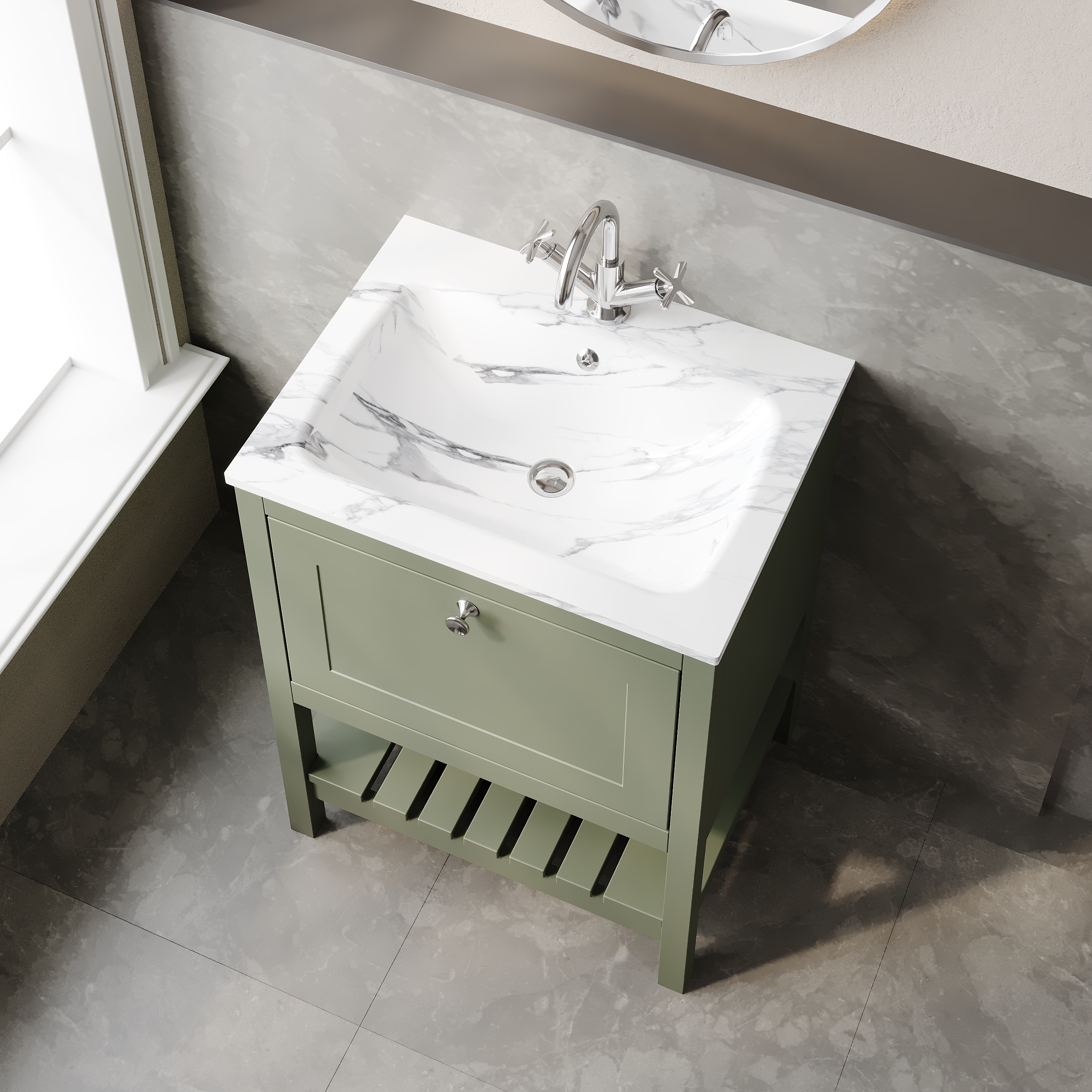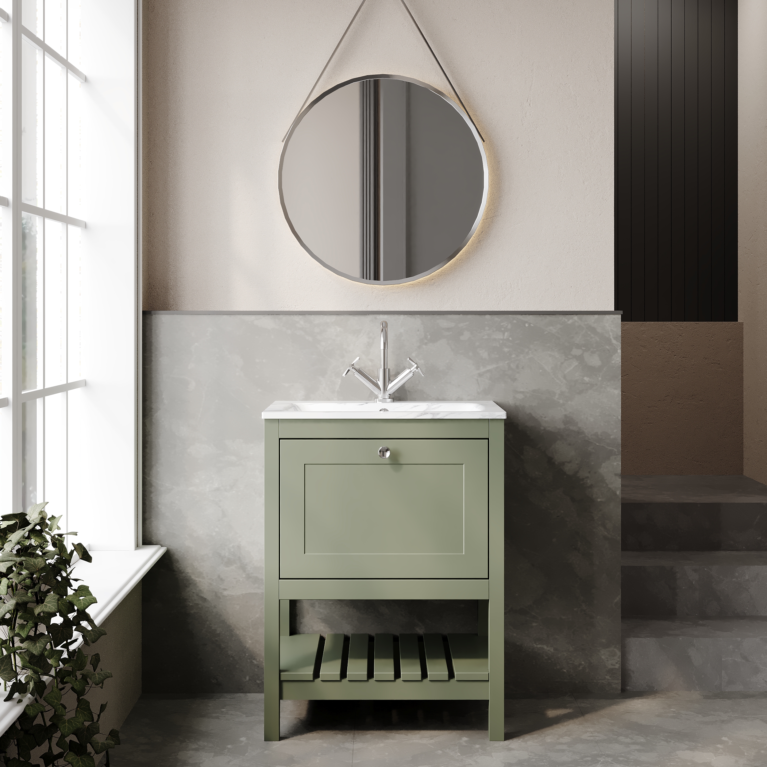 Bexley Floor Standing 1 Drawer Vanity & 1 Tap Hole Stone Basin, 600mm - Fern Green