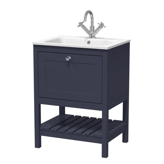 Hudson Reed Bexley Floor Standing 1 Drawer Vanity & 1 Tap Hole Stone Basin, 600mm - Indigo Blue