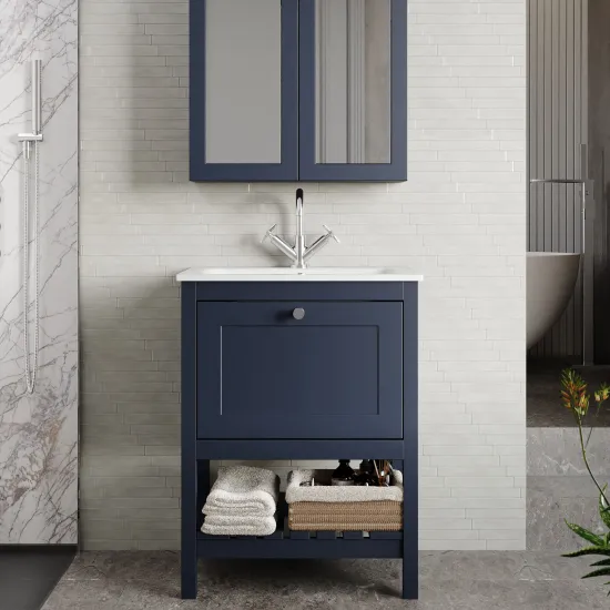Bexley Floor Standing 1 Drawer Vanity & 1 Tap Hole Stone Basin, 600mm - Indigo Blue