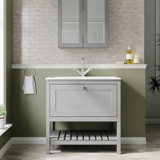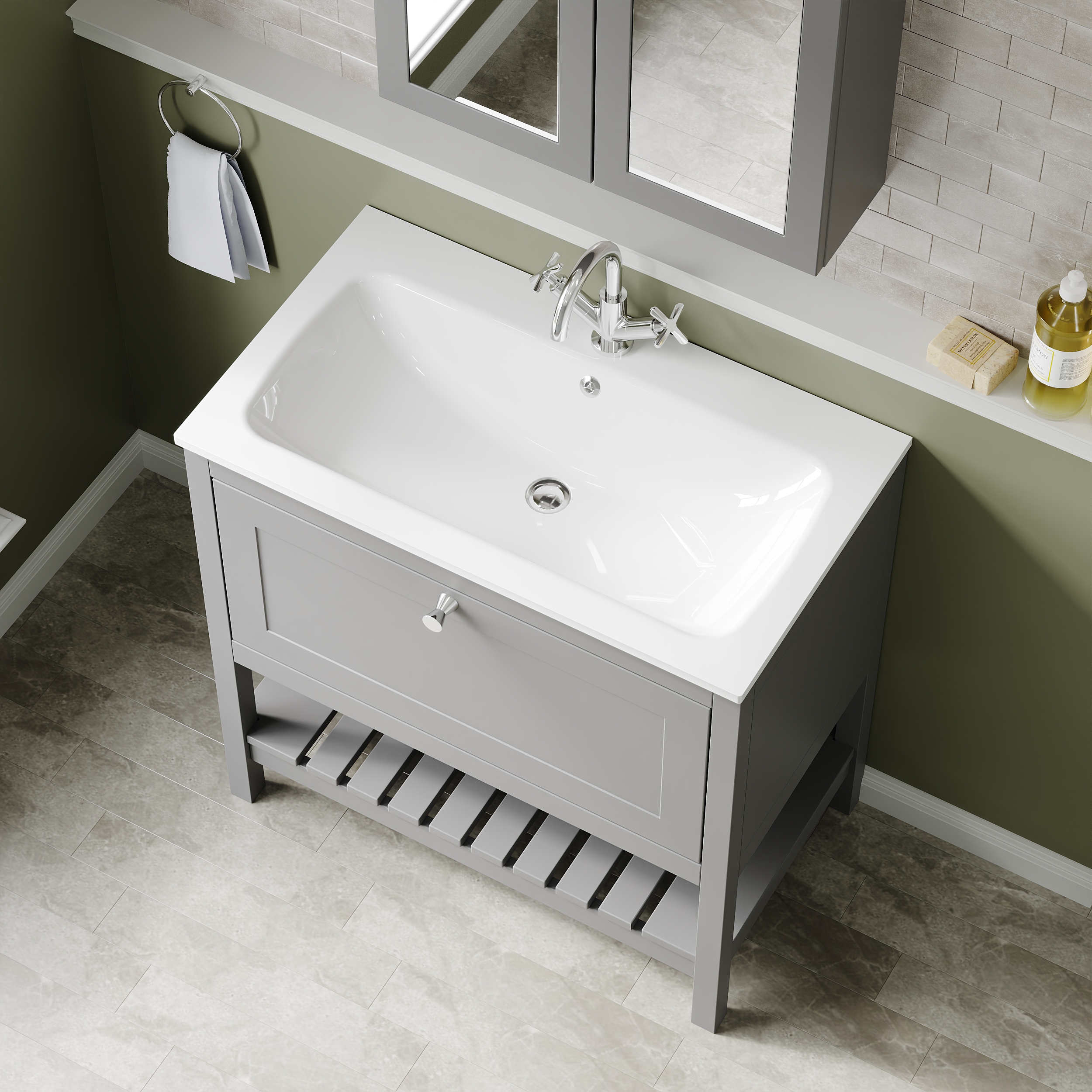 Bexley Floor Standing 1 Drawer Vanity & 1 Tap Hole Stone Basin, 800mm - Cool Grey