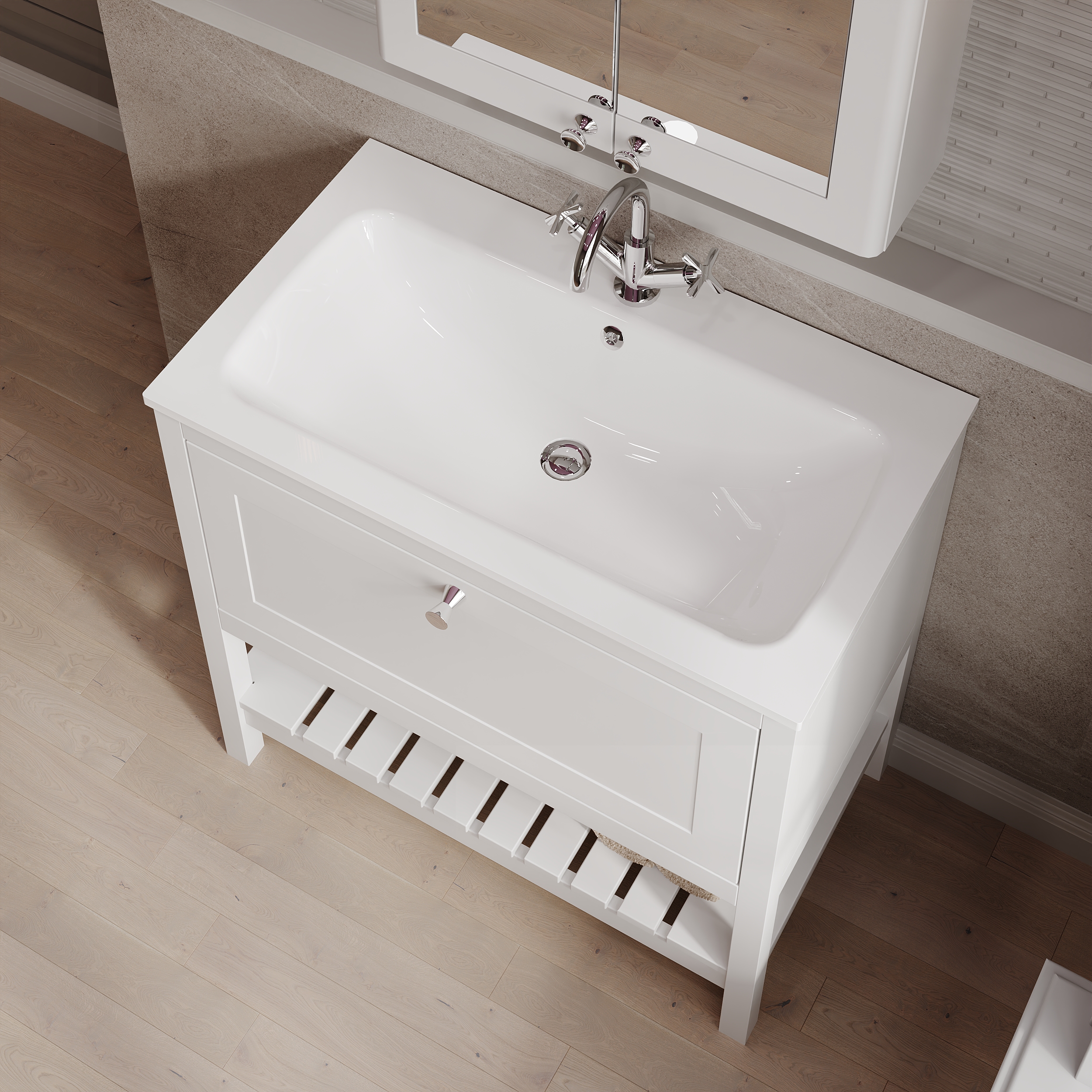 Bexley Floor Standing 1 Drawer Vanity & 1 Tap Hole Stone Basin, 800mm - Pure White