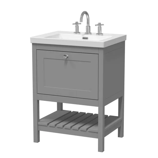 Hudson Reed Bexley Floor Standing 1 Drawer Vanity & 3 Tap Hole Contemporary Fireclay Basin, 600mm - Cool Grey