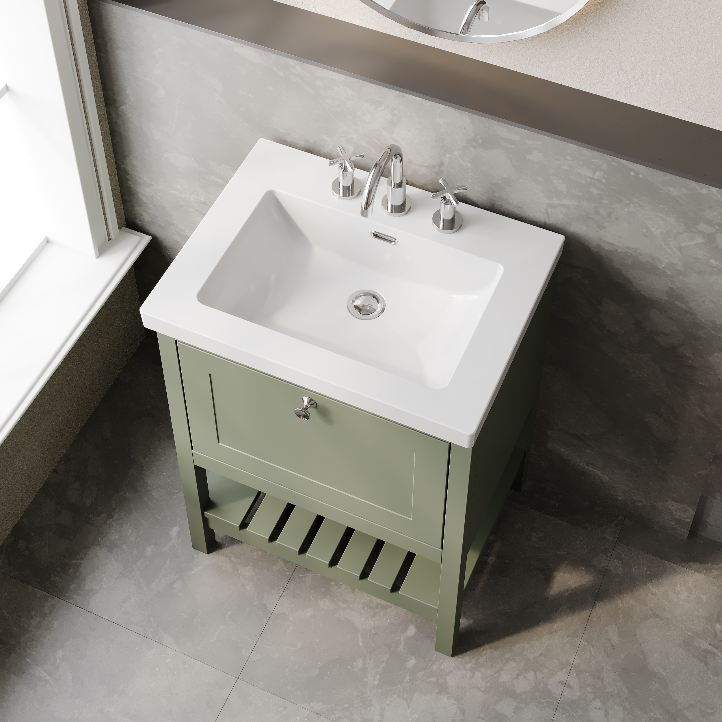 Hudson Reed Bexley Floor Standing 1 Drawer Vanity & 3 Tap Hole Contemporary Fireclay Basin, 600mm - Fern Green