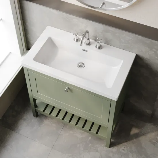 Hudson Reed Bexley Floor Standing 1 Drawer Vanity & 3 Tap Hole Contemporary Fireclay Basin, 800mm - Fern Green