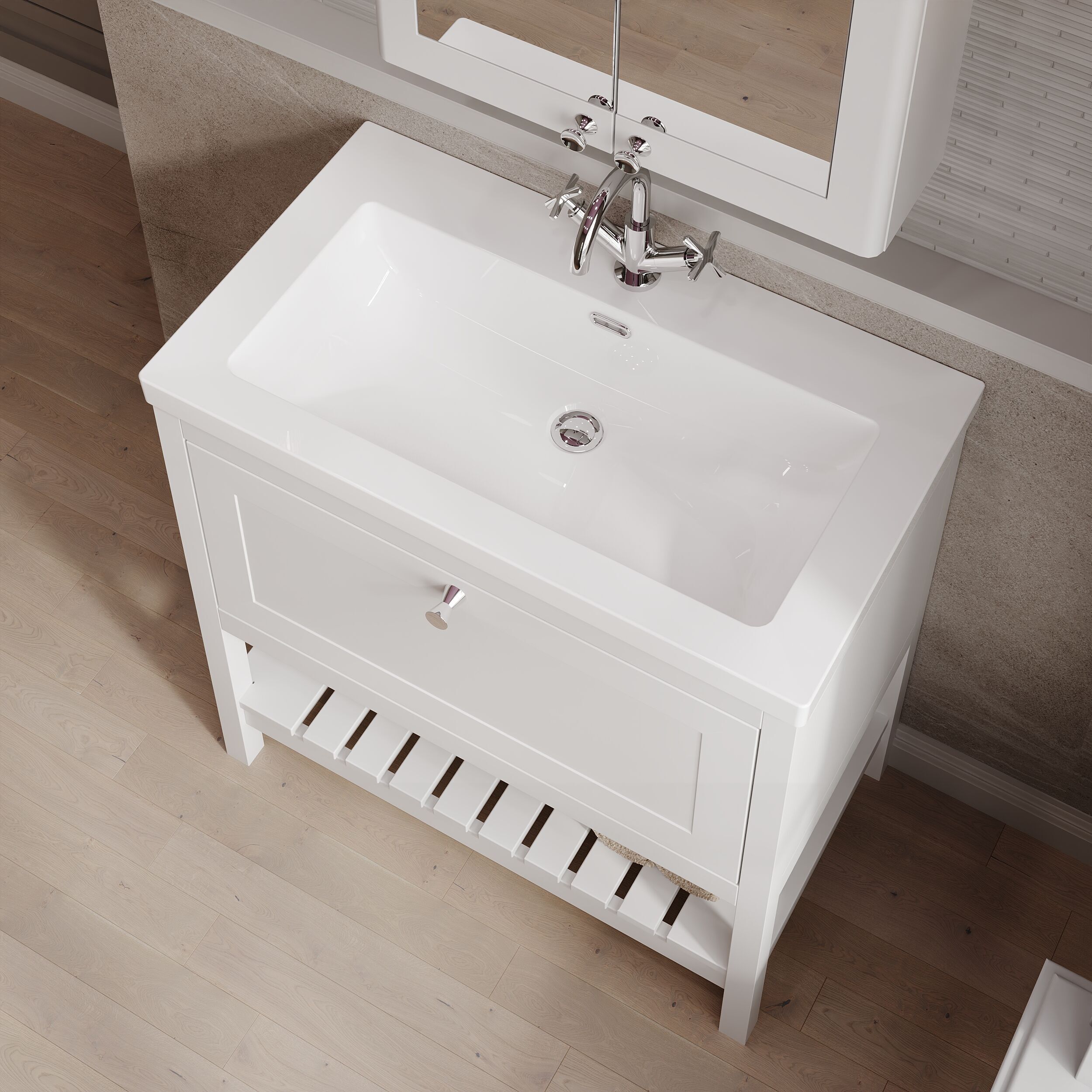Hudson Reed Bexley 800mm Pure White Traditional Floor Standing Vanity Unit With 3 Tap Hole Basin