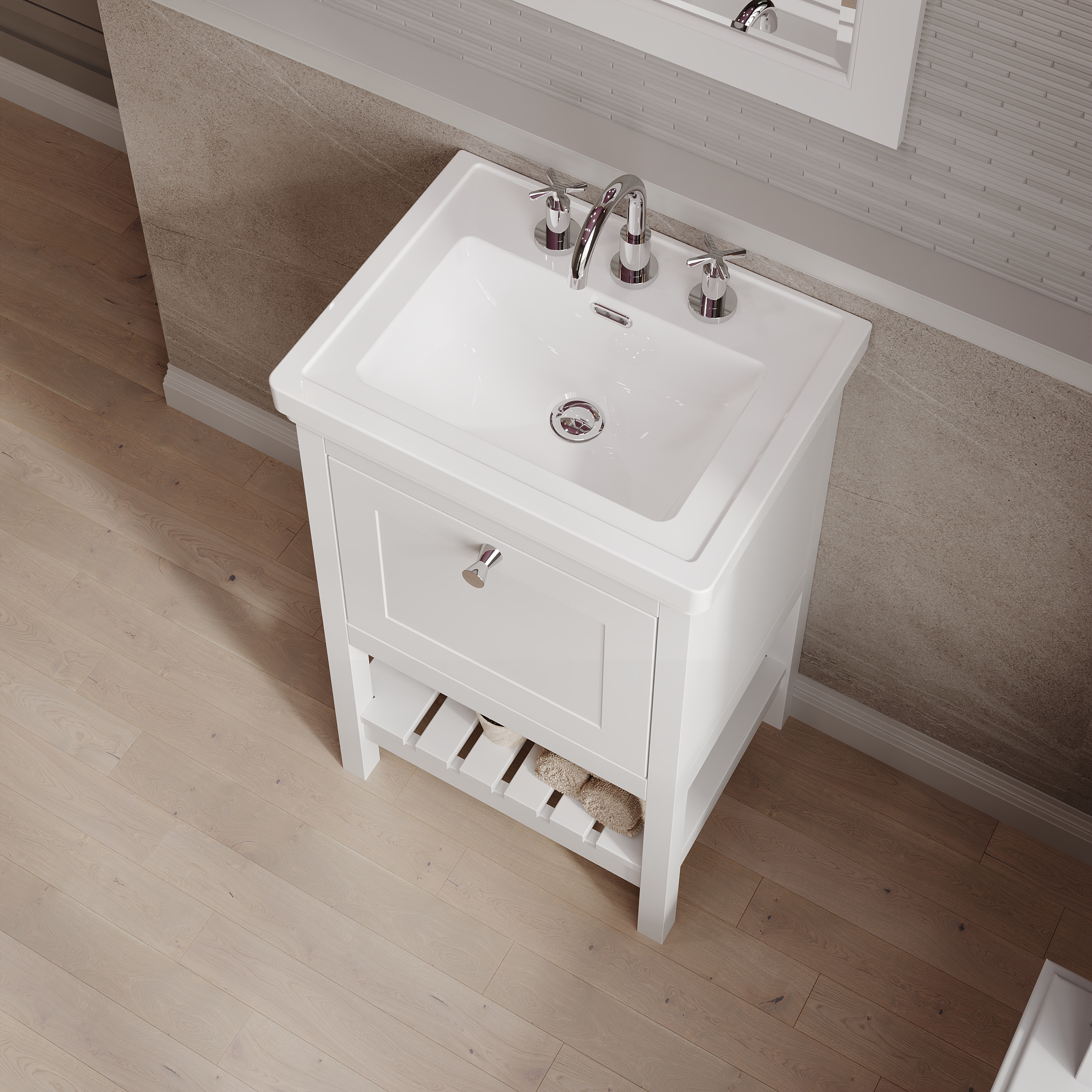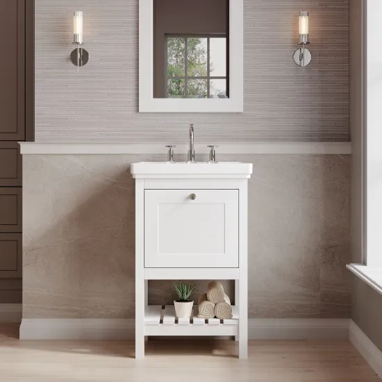 Hudson Reed Bexley Floor Standing 1 Drawer Vanity & 3 Tap Hole Fireclay Basin, 500mm - Pure White