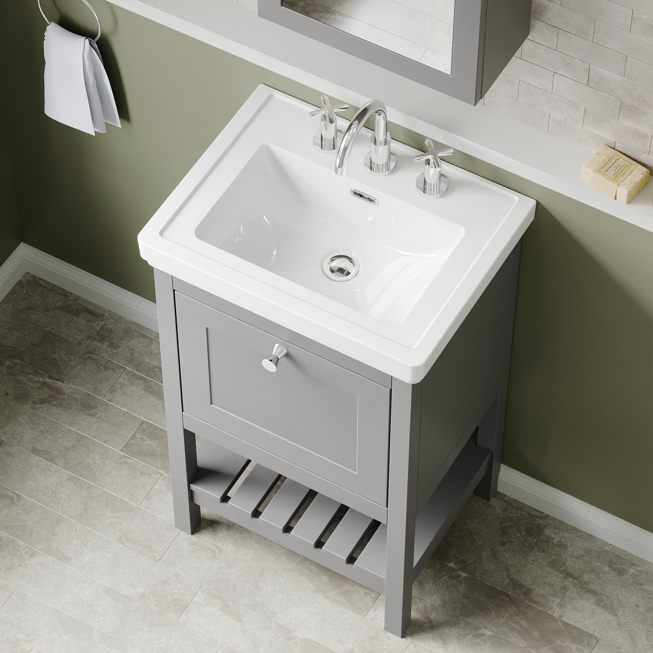 Hudson Reed Bexley Floor Standing 1 Drawer Vanity & 3 Tap Hole Fireclay Basin, 500mm - Cool Grey