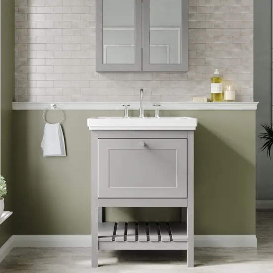Hudson Reed Bexley Floor Standing 1 Drawer Vanity & 3 Tap Hole Fireclay Basin, 600mm - Cool Grey
