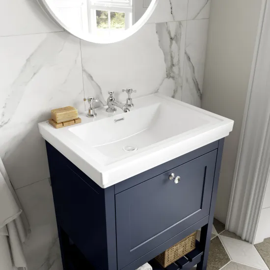 Hudson Reed Bexley 600mm Indigo Blue Floor Standing 1 Drawer Vanity Unit with 1 Tap Hole Fireclay Basin