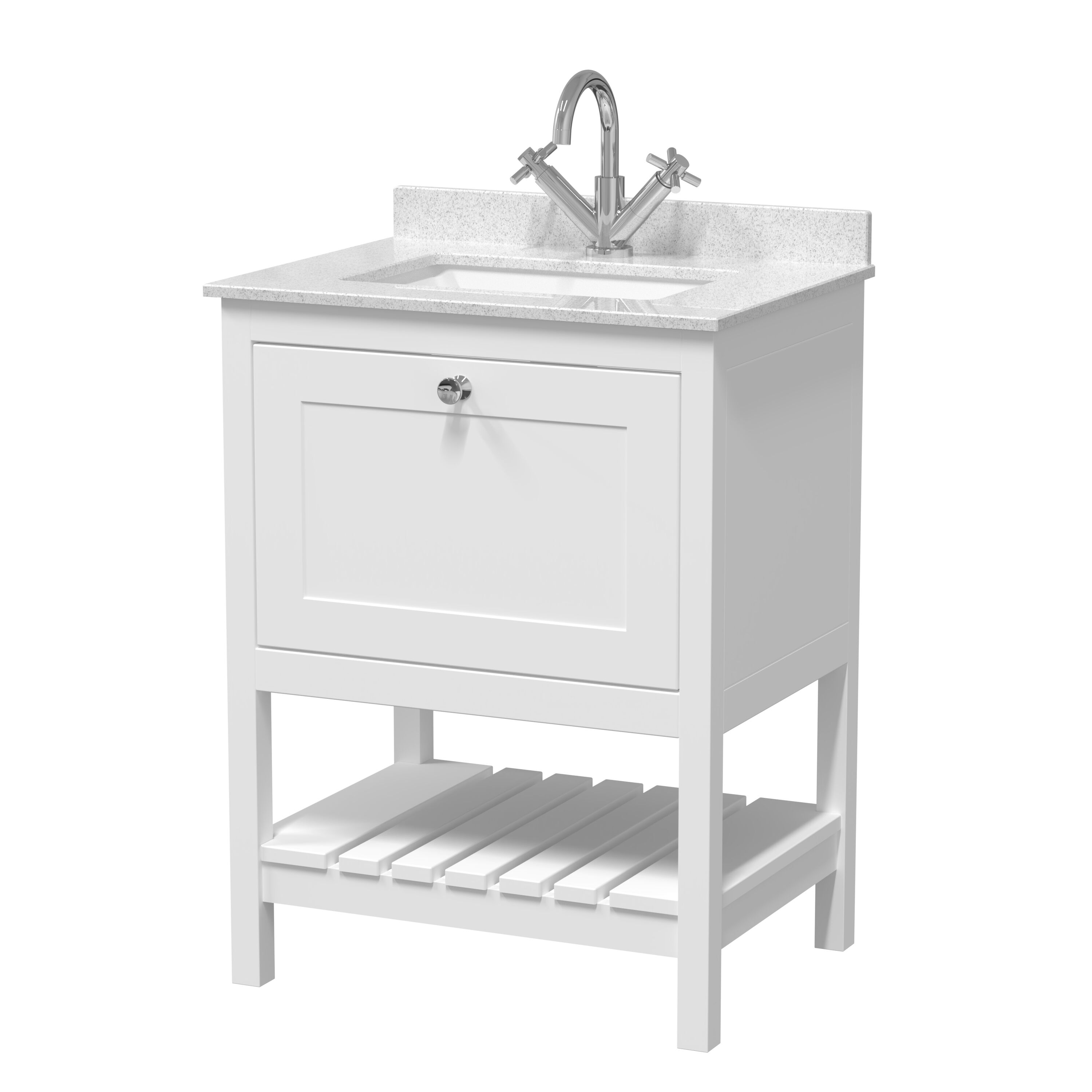 Hudson Reed Bexley Floor Standing 1 Drawer Vanity & Single Bowl 1 Tap Hole Marble Top, 600mm - Pure White/White