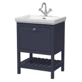 Hudson Reed Bexley 600mm Indigo Blue Floor Standing 1 Drawer Vanity Unit with 1 Tap Hole Fireclay Basin
