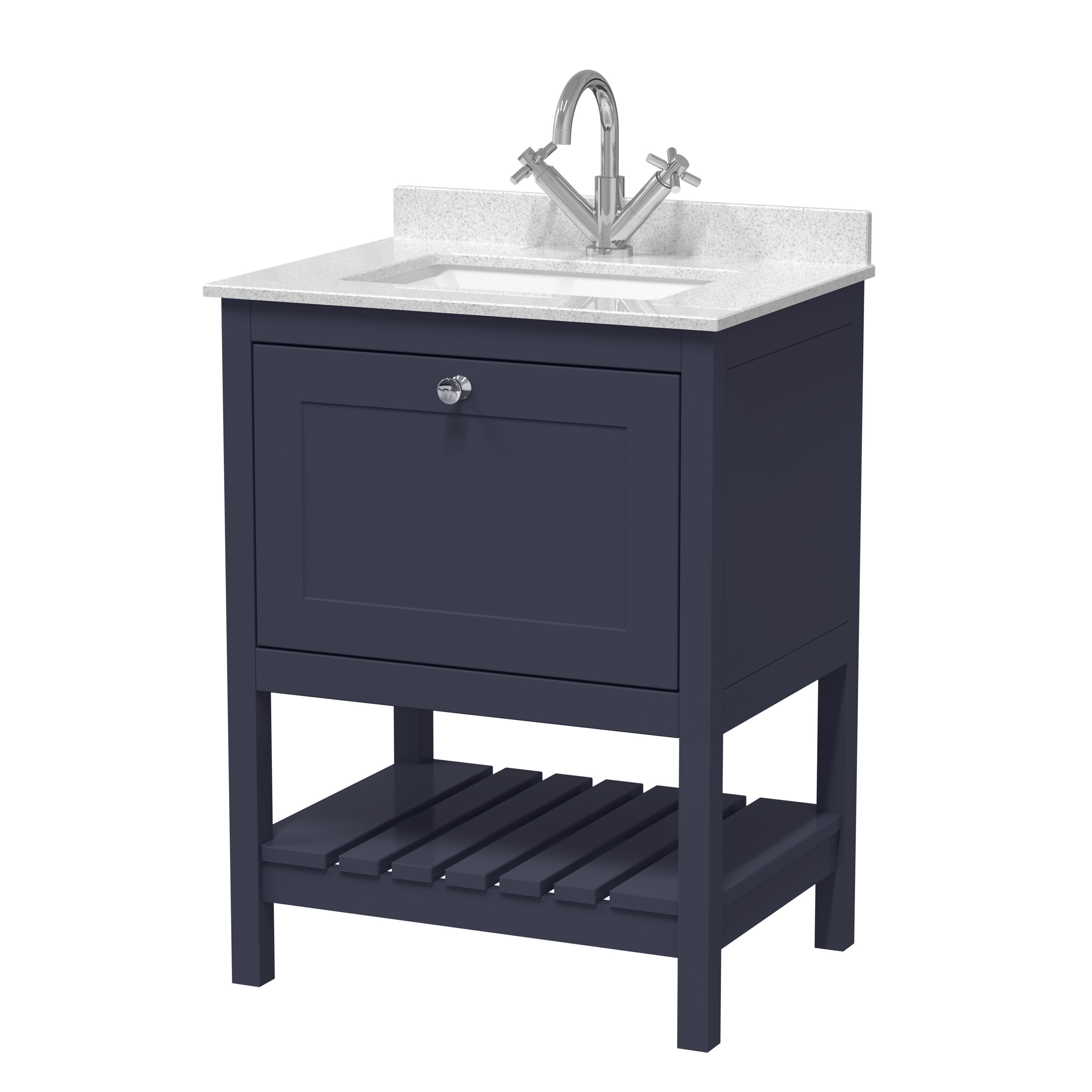 Hudson Reed Bexley 600mm Indigo Blue Floor Standing 1 Drawer Vanity Unit with 1 Tap Hole Fireclay Basin