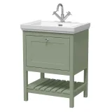 Hudson Reed Bexley 600mm Fern Green 1 Drawer Floor Standing Vanity Unit with 3 Tap Hole Fireclay Basin