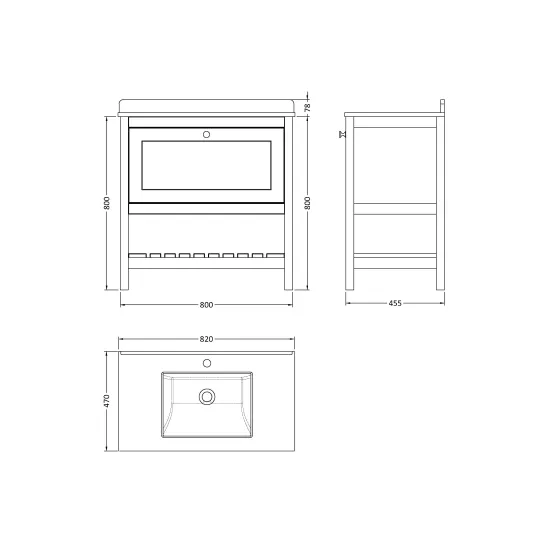 Hudson Reed Bexley 800mm Floor Standing Vanity Unit With Basin, 1 Tap Hole & Soft Close Drawers