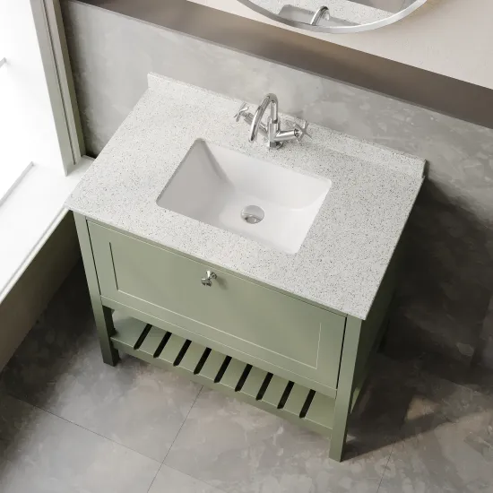 Hudson Reed Bexley Floor Standing 1 Drawer Vanity & Single Bowl 1 Tap Hole Marble Top, 800mm - Fern Green/White
