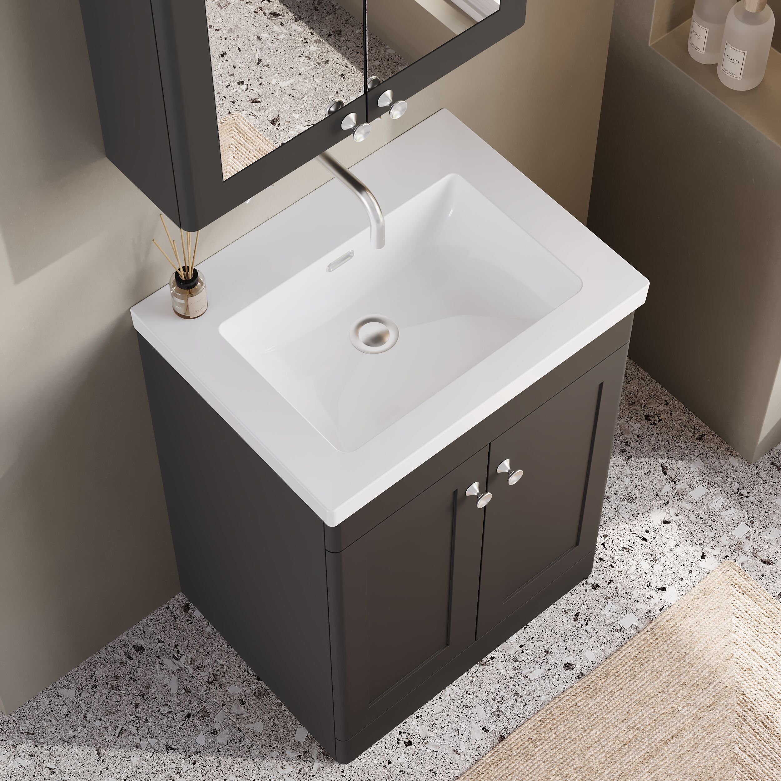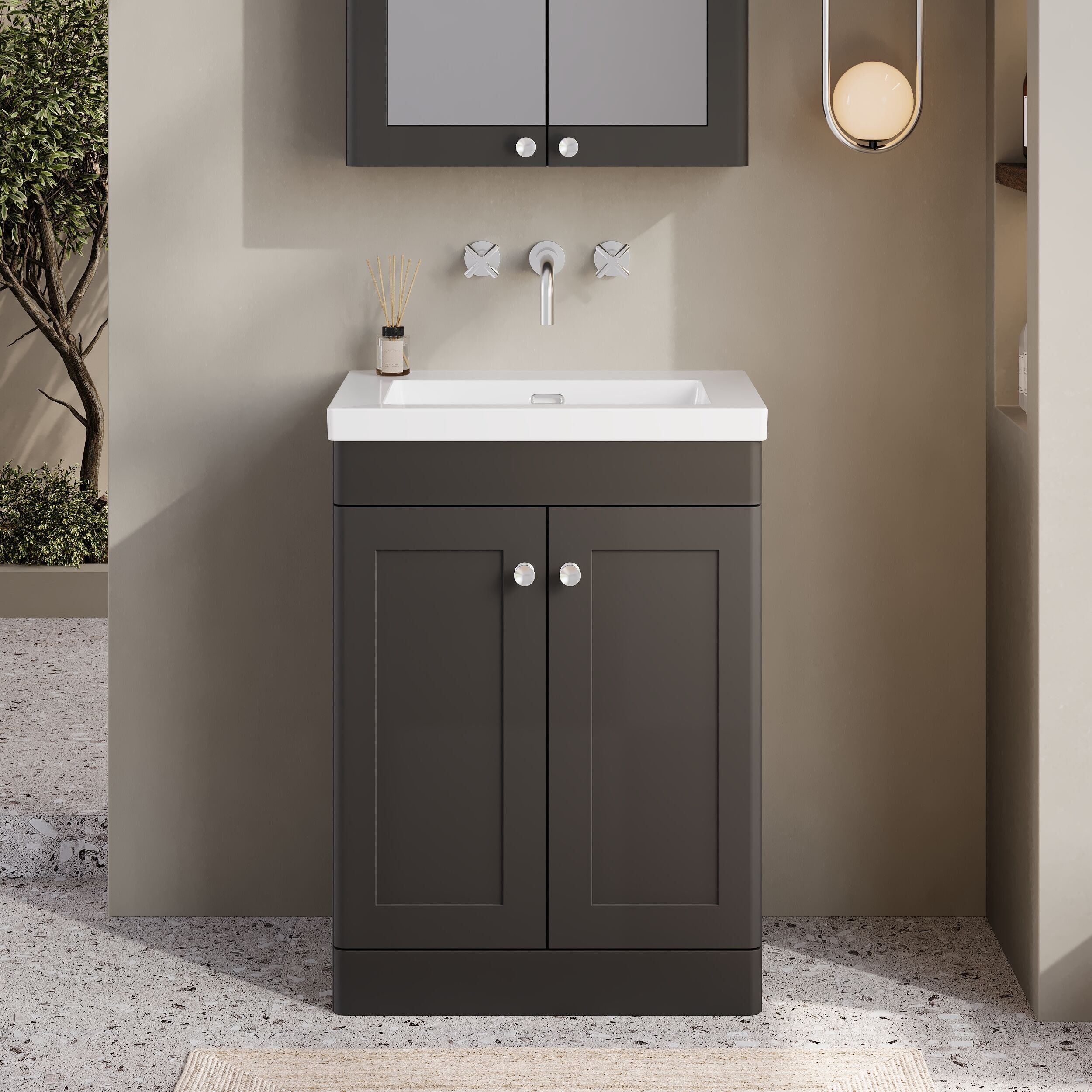 nuie Classique 600mm Floor Standing 2-Door Vanity with Basin - 0 Tap Hole - Soft Black