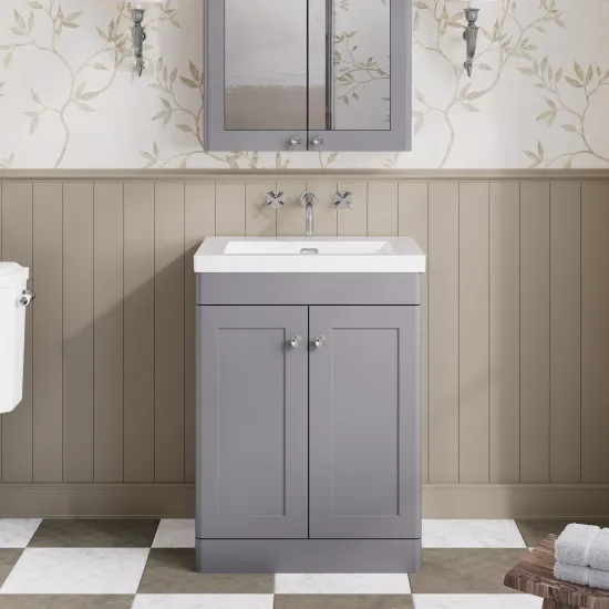 nuie Classique 600mm Floor Standing 2-Door Vanity with Basin - 0 Tap Hole - Satin Grey