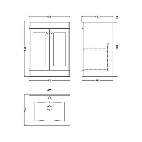 nuie Classique 600mm Floor Standing 2-Door Vanity with Basin - 1 Tap Hole - Satin White