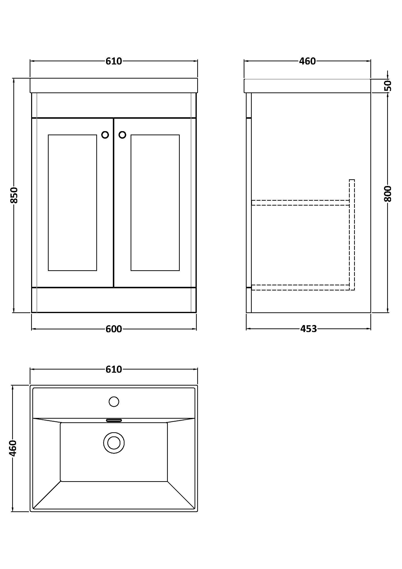 Supplied with vitreous china basin with 1 tap hole.