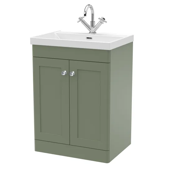 nuie Classique 600mm Floor Standing 2-Door Vanity with Basin - 1 Tap Hole - Satin Green
