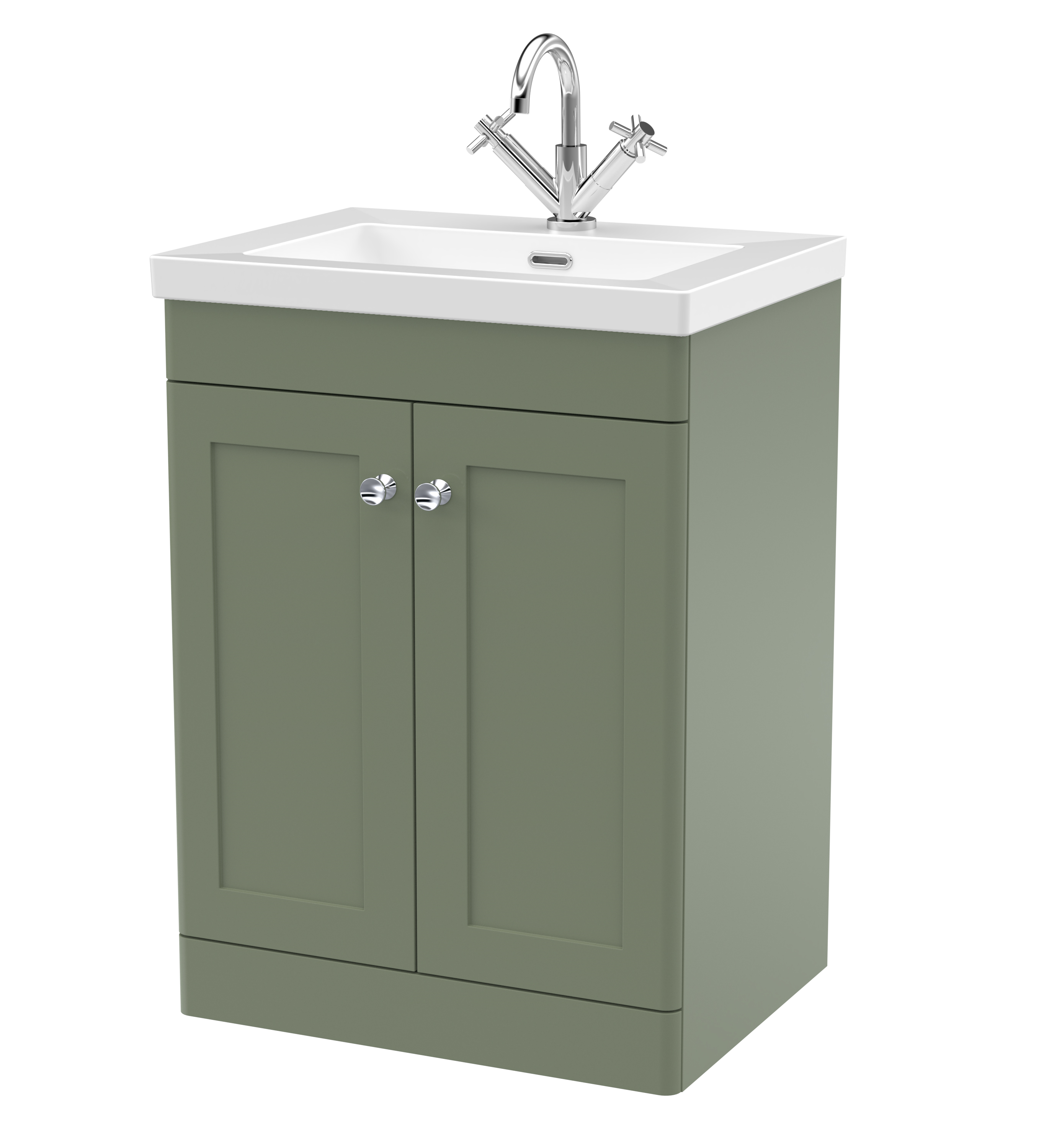 nuie Classique 600mm Floor Standing 2-Door Vanity with Basin - 1 Tap Hole - Satin Green