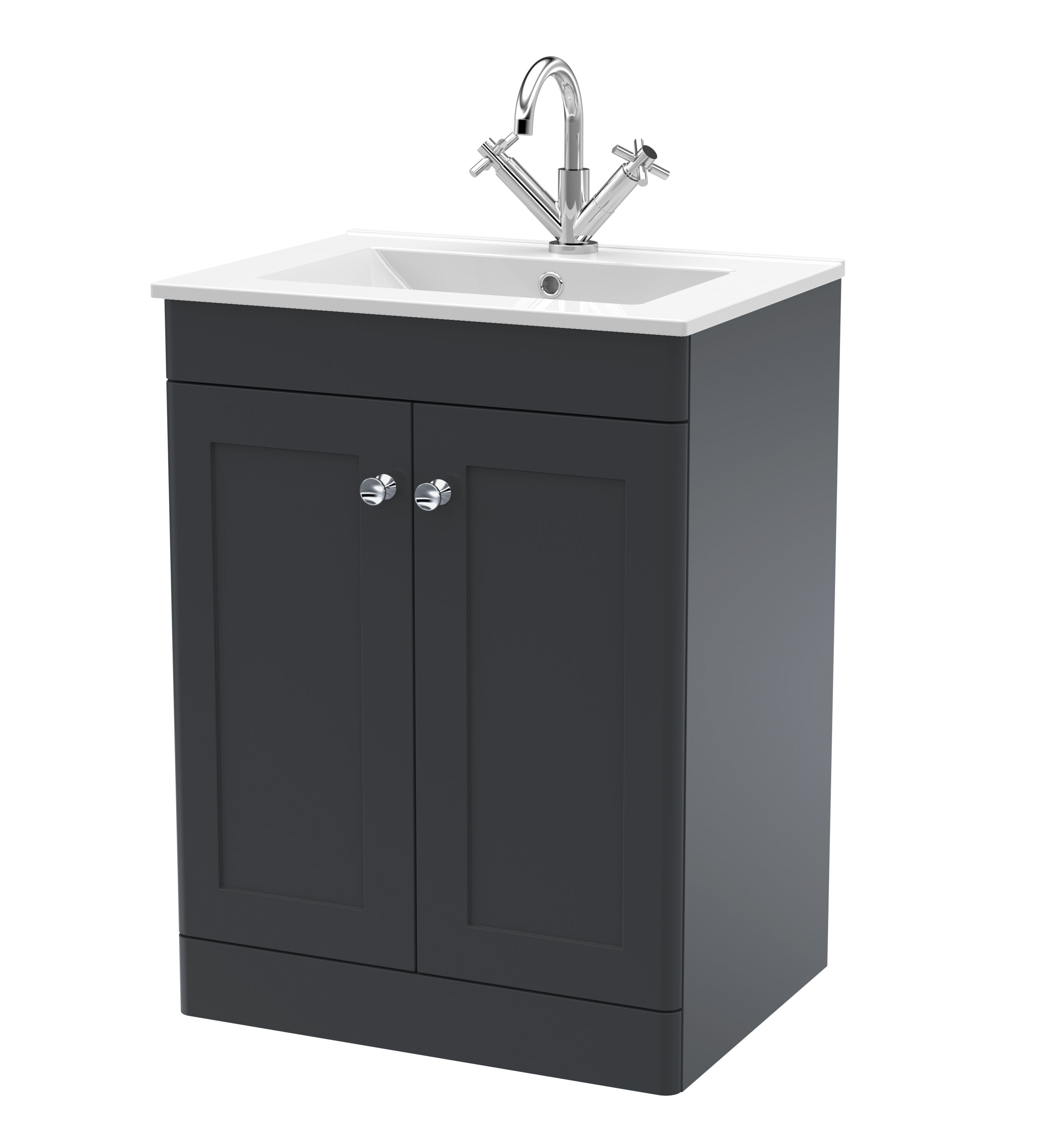 nuie Classique 600mm Floor Standing 2-Door Vanity with Basin - 1 Tap Hole - Soft Black